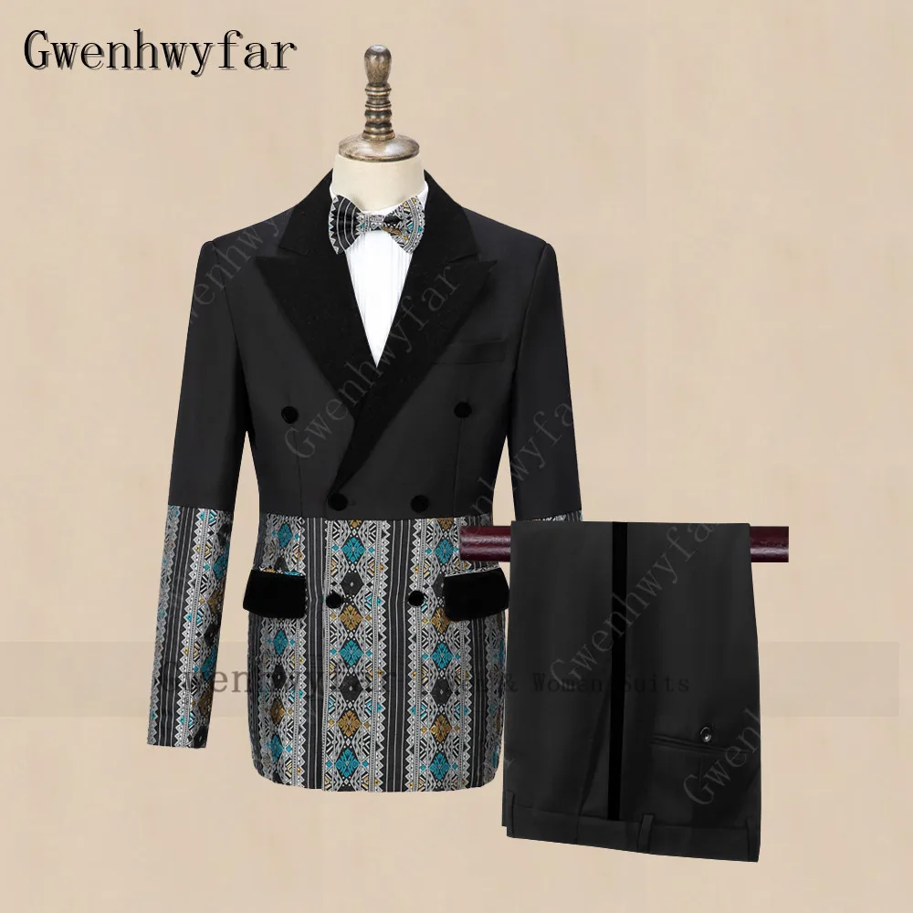 Мужская куртка Gwenhwyfar очаровательного цвета, стильный дизайн, свадебный смокинг, бархатный блейзер с лацканами и брюками, костюм с зеленым и печатным рисунком