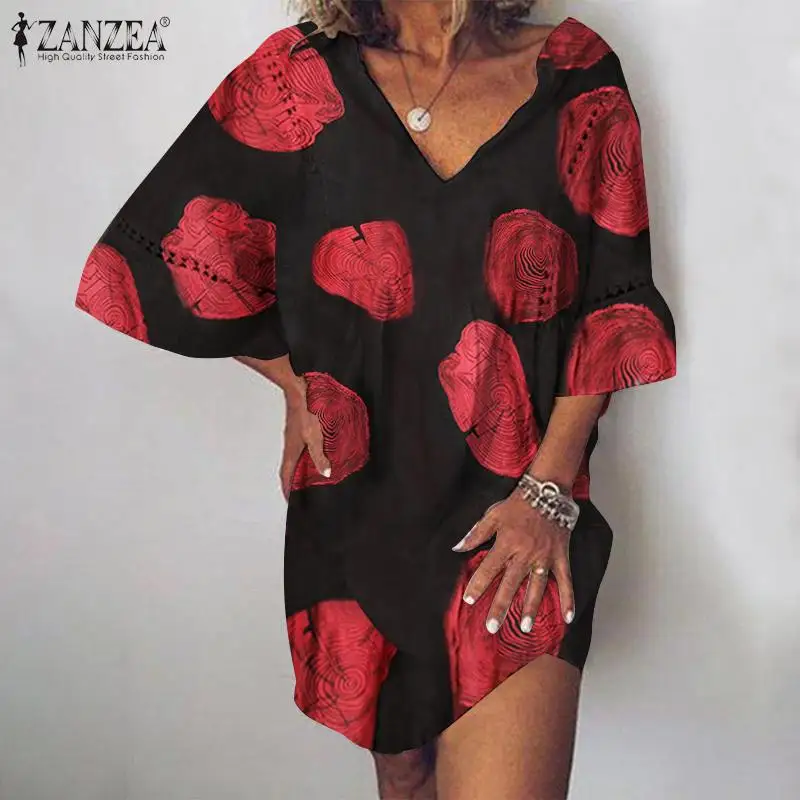 Платье ZANZEA женское с принтом, повседневный кружевной сарафан с расклешенным рукавом, до колен, лето 2021