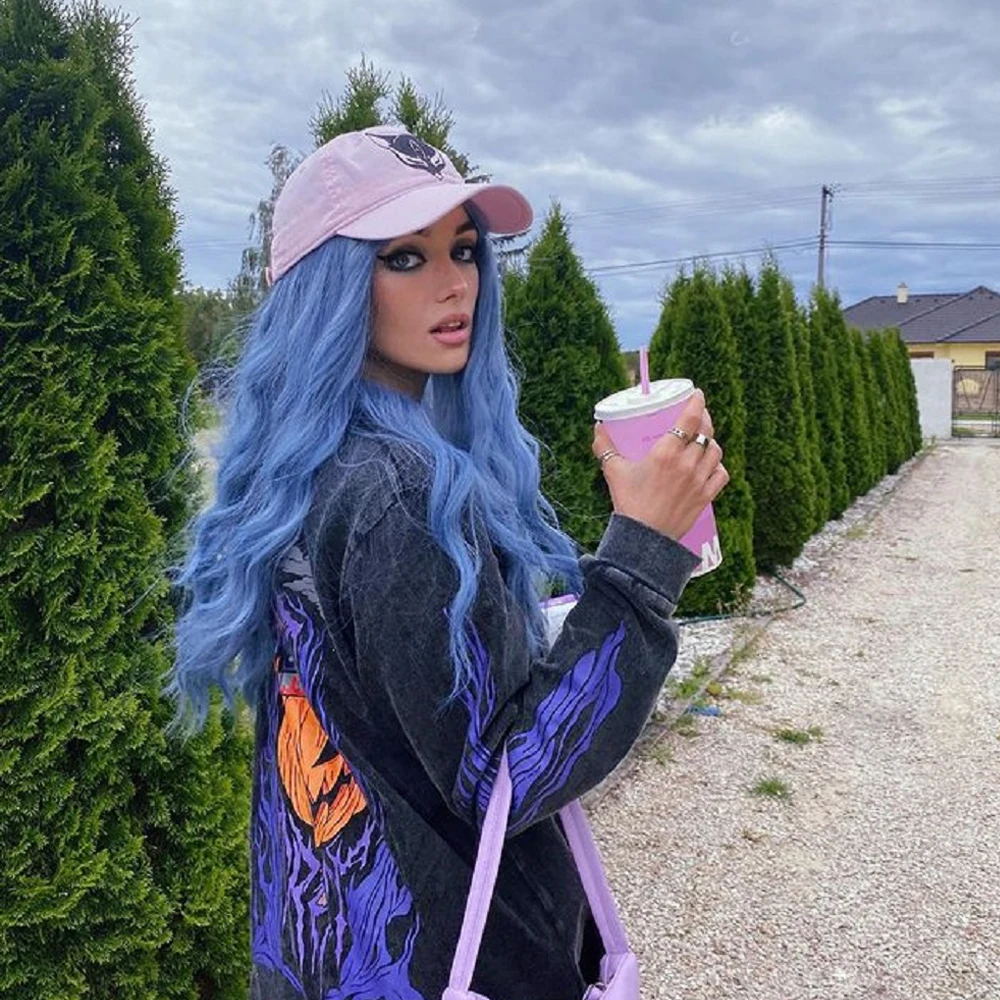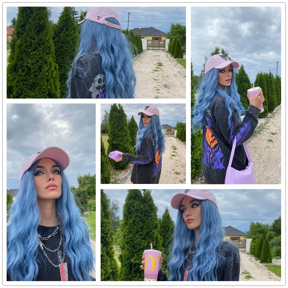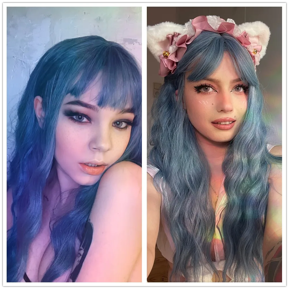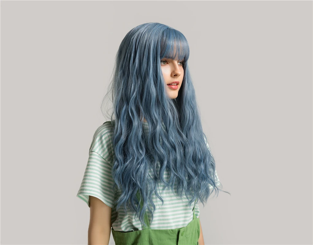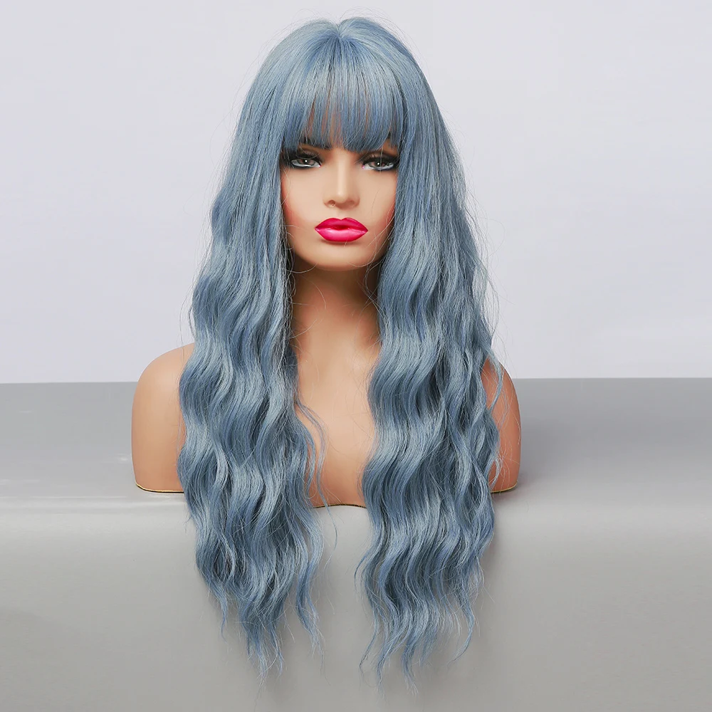 GEMMA Длинные Волнистые Синие высокотемпературные парики для черно-белых женщин афро Косплей вечевечерние НКА ежедневные синтетические волосы парики с челкой