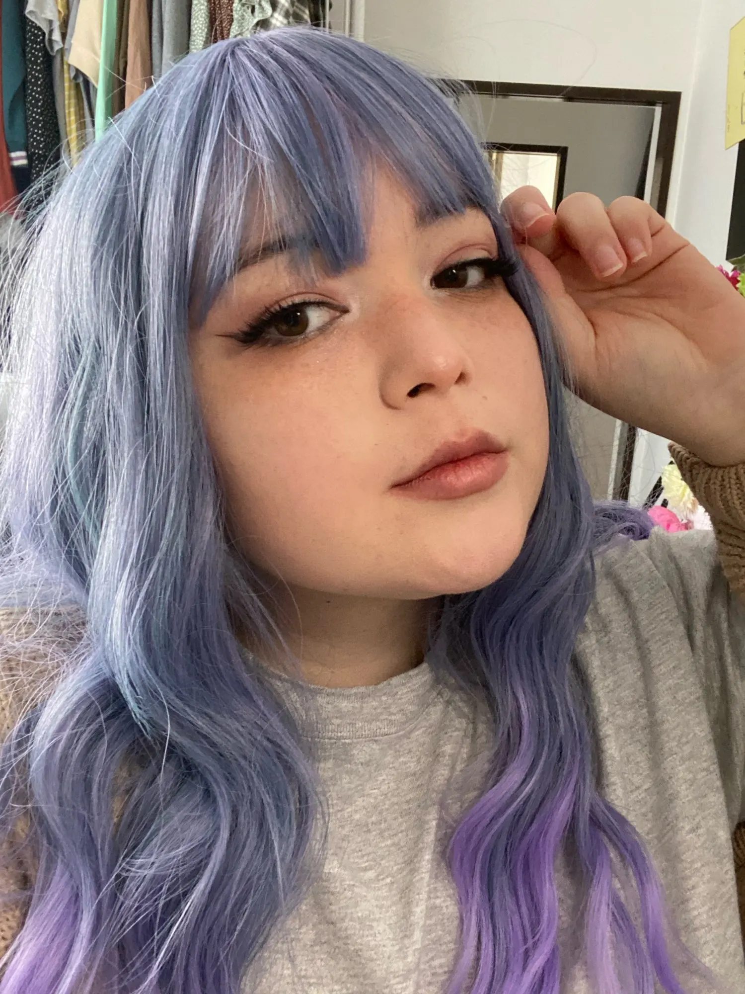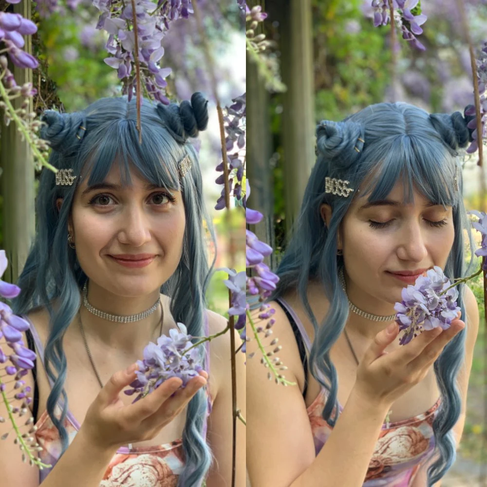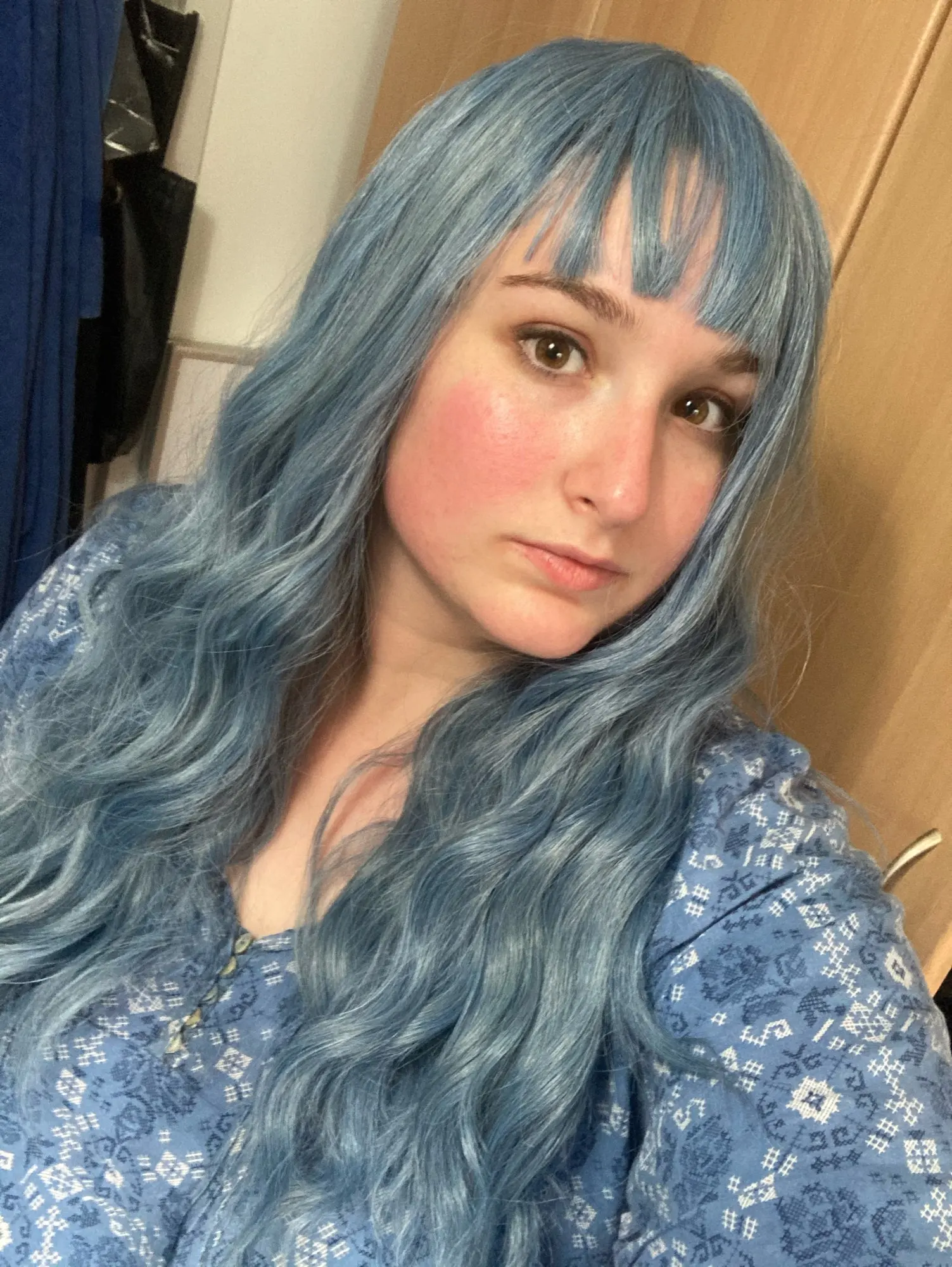 Парик хороший, но челка подвела конечно. Слишком длинная, уложить ее совершенно невозможно, но за такую цену качество волос суперское. Он не блестит, если припудрить тальком каким-нибудь, то от настоящих не отличишь) но я бы не стала выходить в нем куда-то, для видео или фото в самый раз