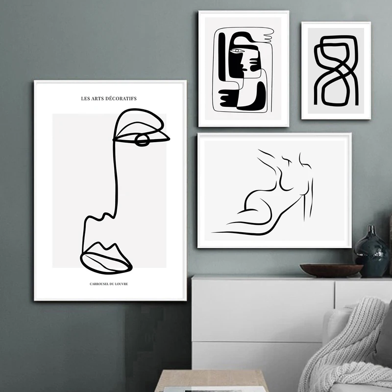 Настенная живопись на холсте абстрактные фигуры тело черные линии женщина скандинавские плакаты и принты настенные картинки для декора гостиной