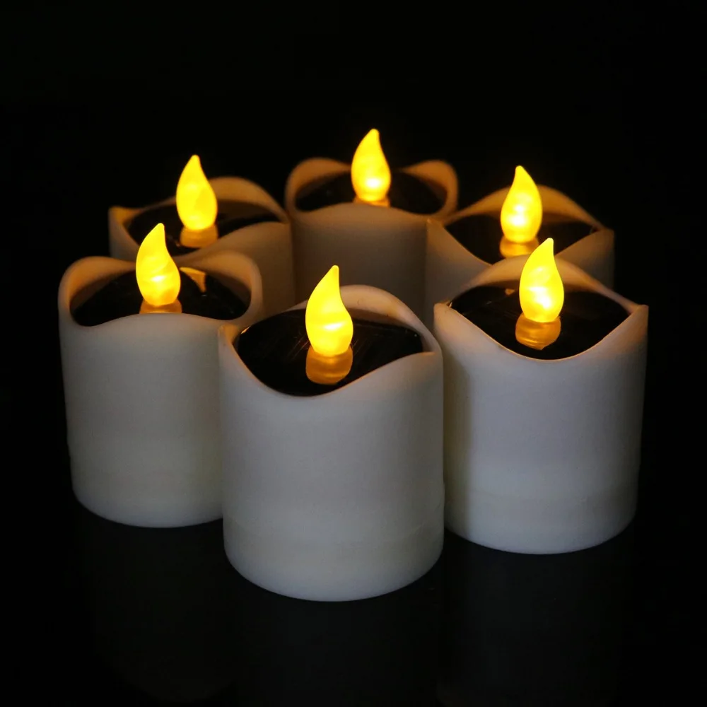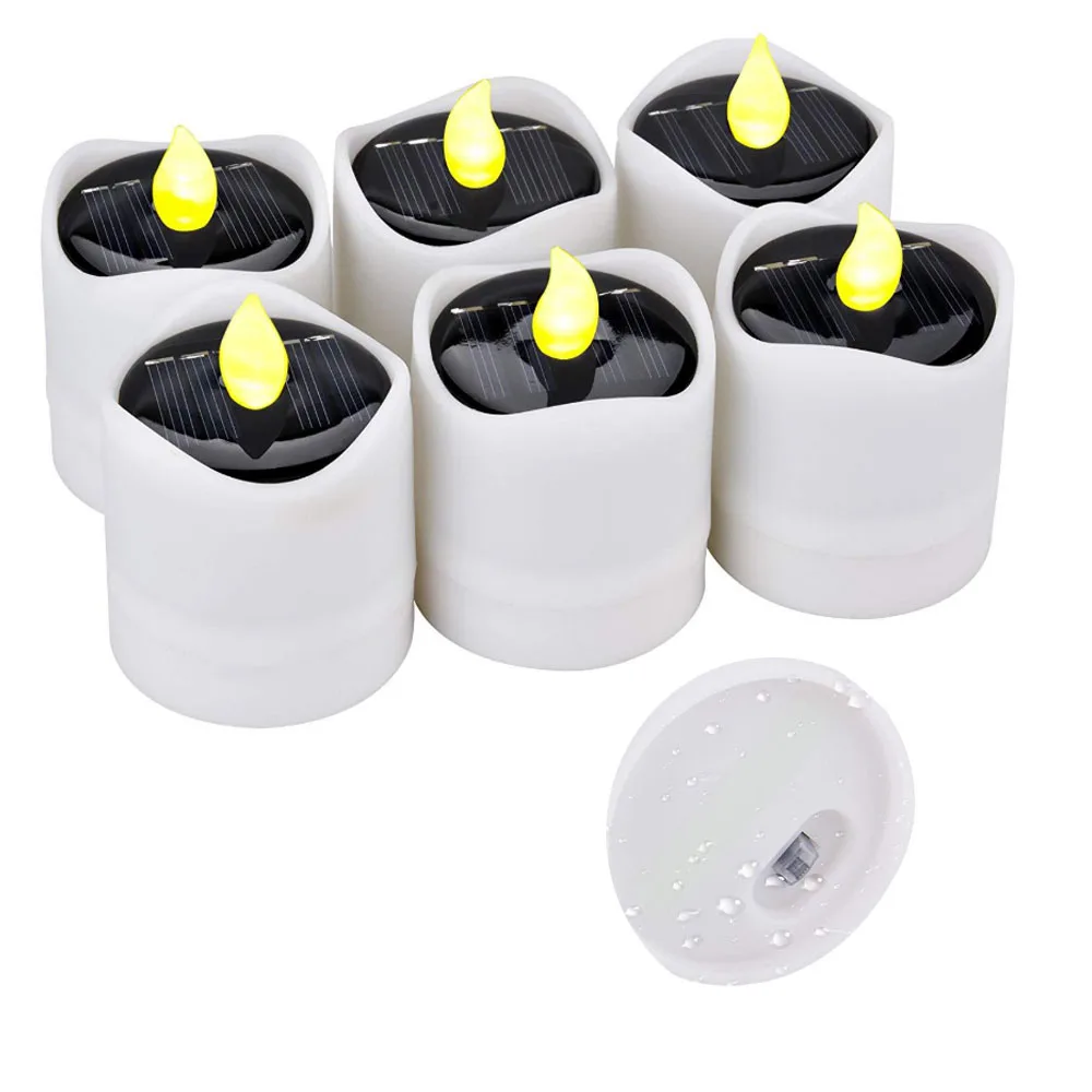 Набор из 6 электронных свечей на солнечной батарее, автоматическое включение и выключение, Мерцающий СВЕТОДИОДНЫЙ светильник для чая, водонепроницаемый, сделай сам, беспламенный светильник для вечевечерние, портативный