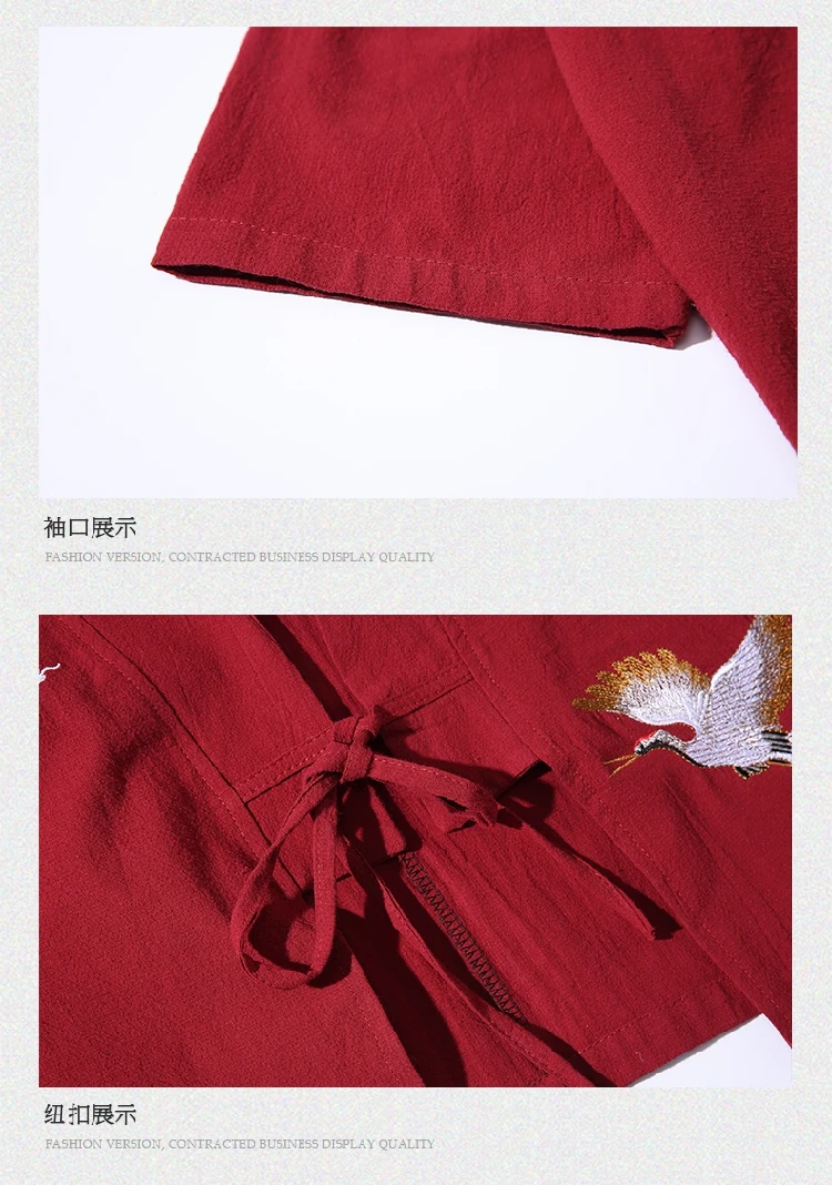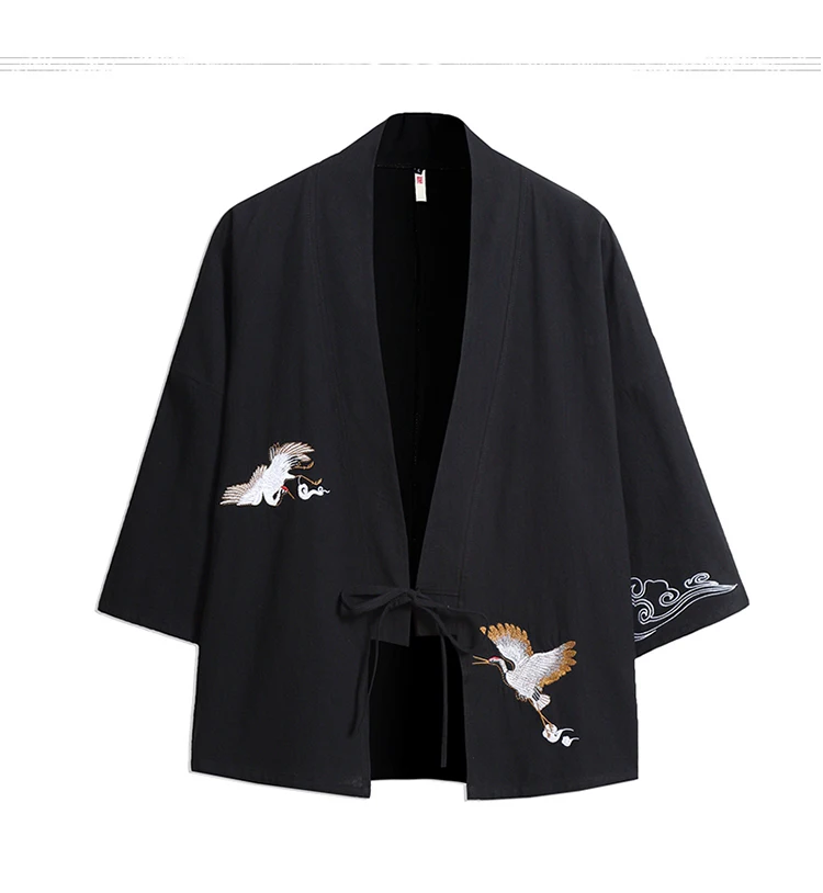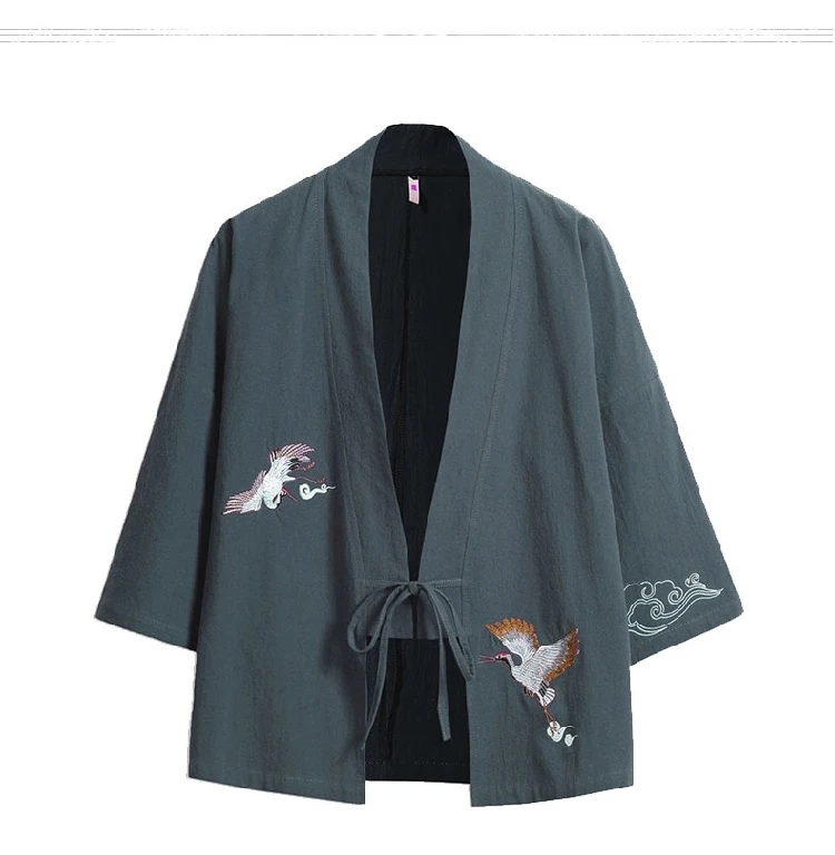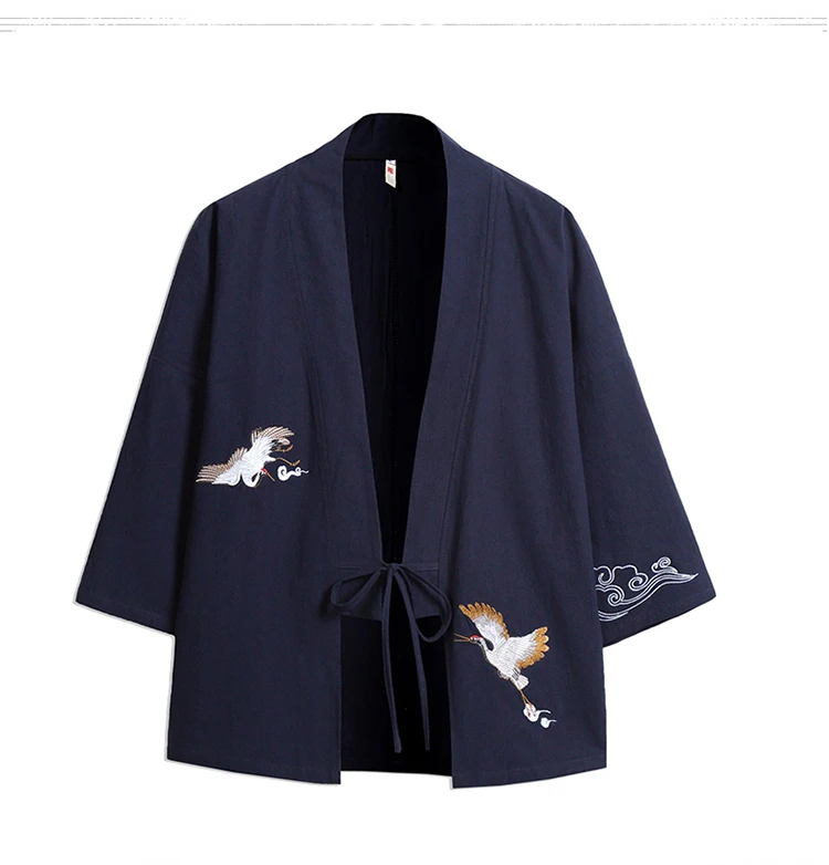 Кимоно мужское с вышивкой Журавля, рубашка в китайском стиле, уличная одежда в стиле Харадзюку, винтажное кимоно с поясом, кардиган, 2021