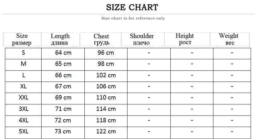1. Это китайский размер, обычно на 2-3 размера меньше, чем размер ЕС/США. Если вы носите Европейский/американский размер M, вы можете выбрать наш Размер XL или XXL. 2. При измерении вручную допускается погрешность в 1-3 см (1 см = 0,39 дюйма). 3. Разные компьютеры могут отображать разные цвета, даже если они одного цвета. Пожалуйста, учитывайте разумную разницу в цвете. 4. Как правило, мы можем отправить ваш заказ в течение 3 дней после оплаты, если нет, пожалуйста, свяжитесь с нами, чтобы проверить проблему.