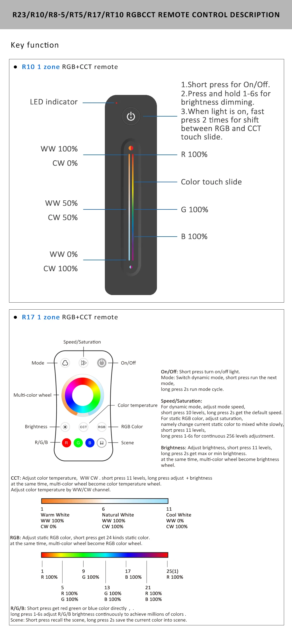Он используется для 5 видов различных светодиодных лент-светильник,-Одноцветный, CCT, RGB, RGBW, RGBCCT светодиодный ленточный светильник.Перед использованием, пожалуйста, убедитесь в том, что ваш светодиодный светильник соответствует вашей модели. Так что светодиодный индикатор может работать должным образом.