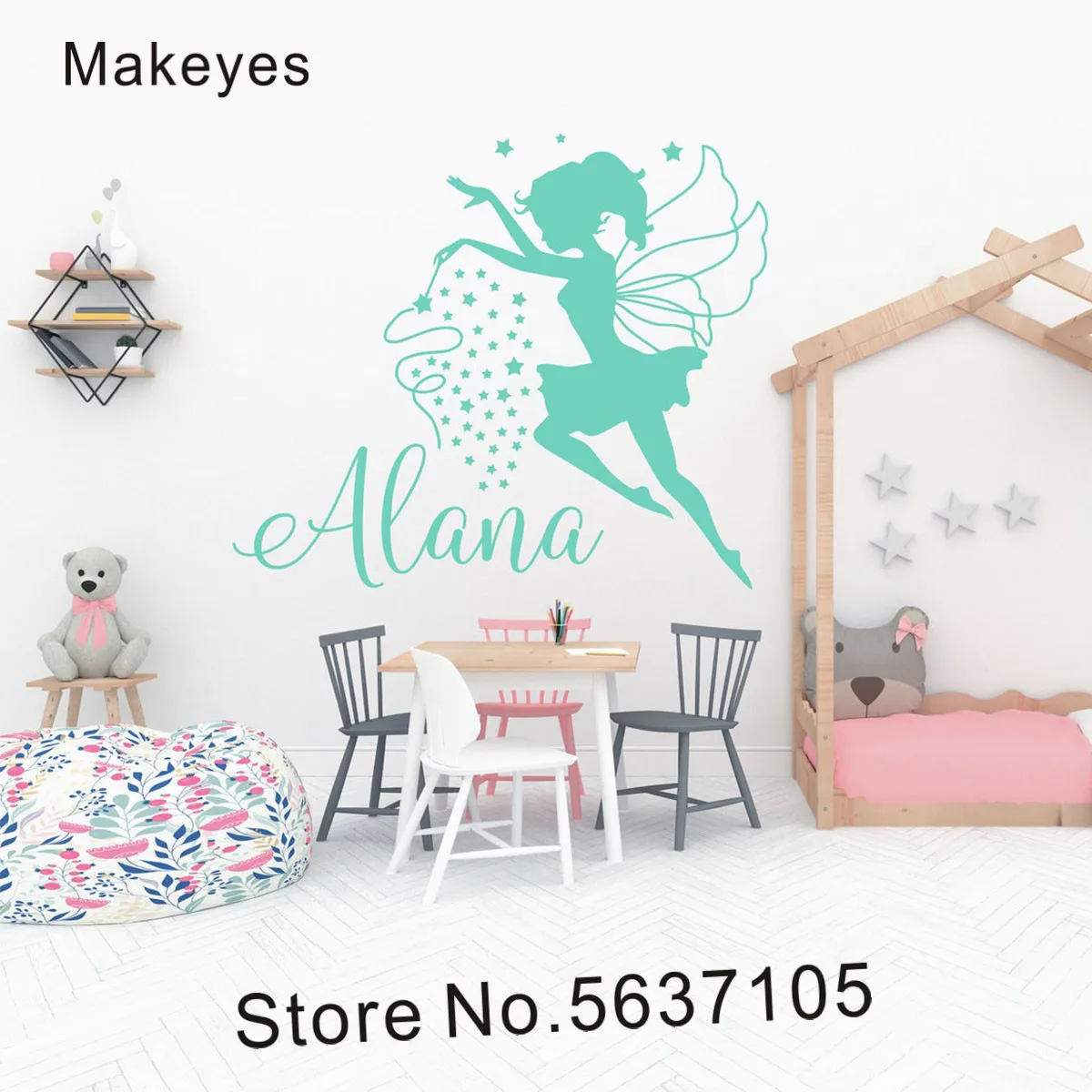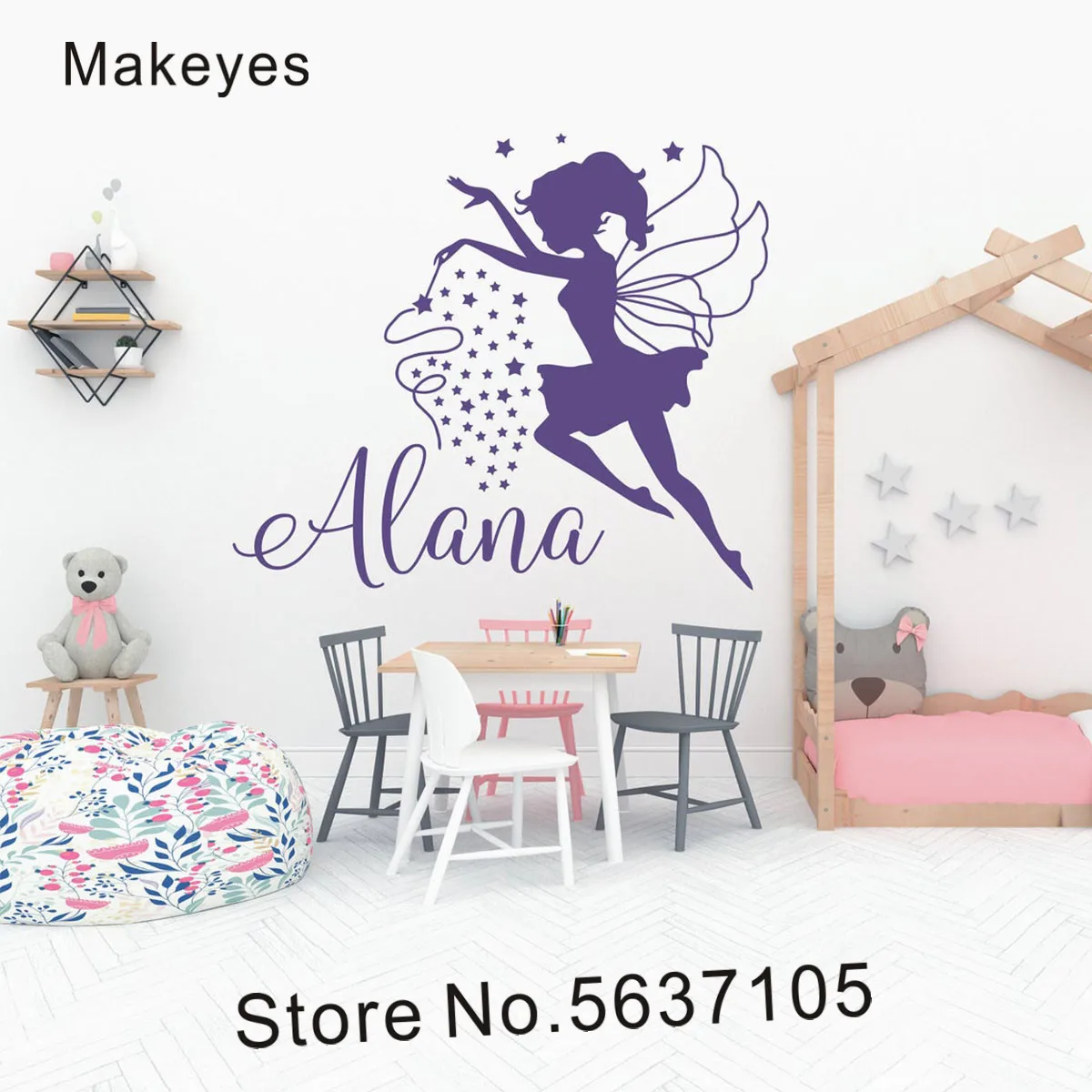 Makeyes пользовательские девочек Имя стены наклейки Фея персонализированные настенные стикеры детские, для малышей Настенный декор для девочек украшения в спальню Q598