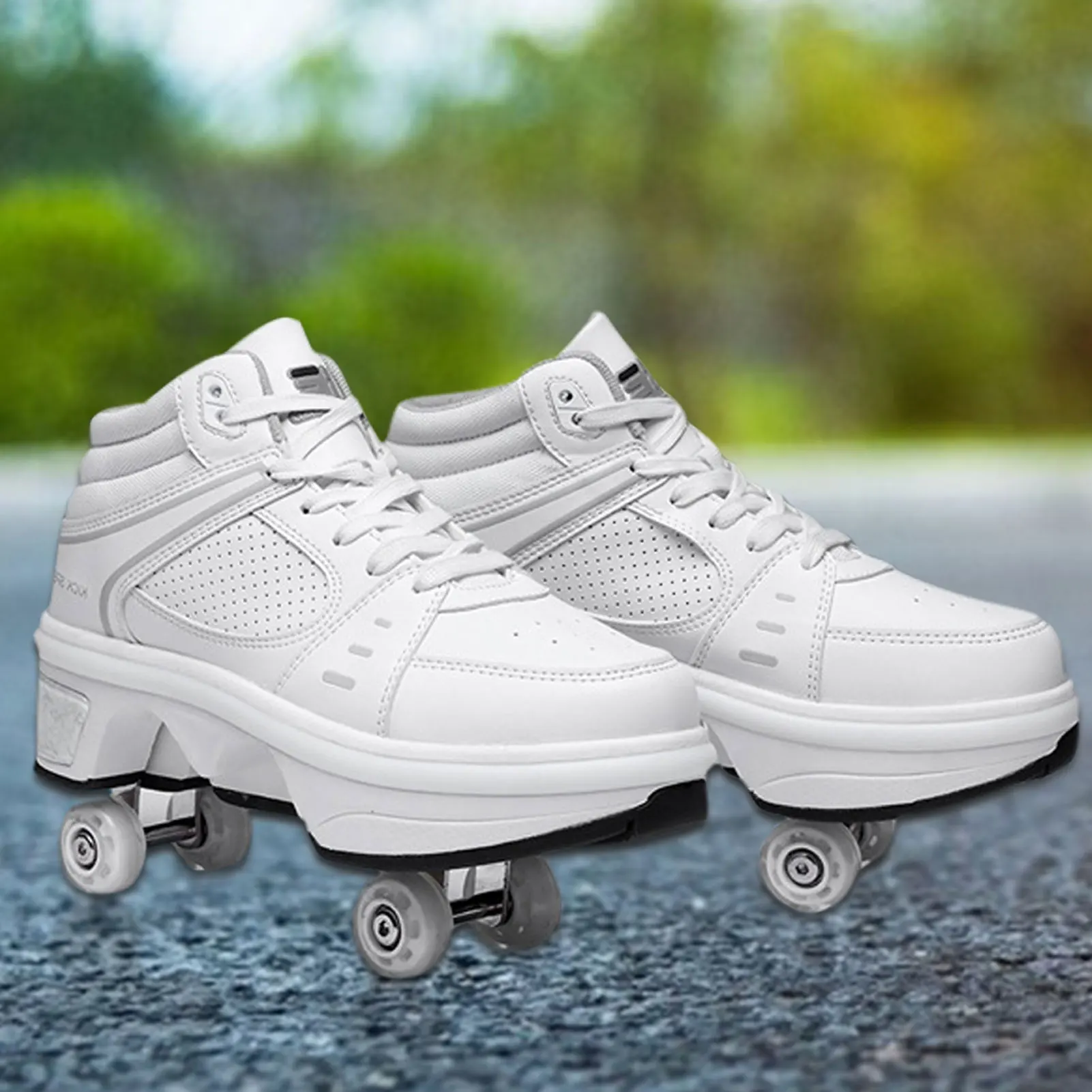 1. Практичная кнопка: обувь оснащена уникальной невидимой кнопкой для предотвращения случайного открывания. На задней части обуви есть кнопка, нажмите на нее, и колесо откроется. Нажмите и удерживайте кнопку, вставьте колесо в нижнюю пластину и отпустите.2. Удобно носить: обувь имеет верхнюю часть стопы, чтобы эффективно защитить пятку и сделать обувь более удобной в носке.3. Широкое применение: стильная и крутая обувь, деформационная обувь отлично подходит для катания на коньках, вечерние, дискотеки, танцев, дня рождения, Рождества.4. Легко носить с собой: маленький светильник, удобный для переноски, легко устанавливается на плоскую обувь, избавляет от хлопот при переноске и сборке.5. Безопасность и практичность: обувь имеет хороший баланс, поэтому вы можете легко контролировать центр тяжести тела, а обувь безопасна в использовании и легкая.Характеристики:Название: деформационная обувьКолесо: полиуретановое колесоМатериал подошвы: ЭВА + резинаВнутренний Материал верха: сетчатая тканьПроцесс изготовления: цементированная обувьМатериал верха: ПУ + микрофибраСтиль: обувь для катания на конькахРазмер (EUR): 33-41Подходит для: мужчин, женщин, детейФункция: дышащийЗакрытый: шнуровкаДлина шнурка (около): 160 смСтиль: спортивный трендВысота каблука (около): Высокий каблук (5 см/1,97 дюйма)Цвет: серебристыйСтиль носка: круглый носокСтиль низа: толстый низВес: 250 кгОкружасветильник: 7-цветный окружающий свет для дыханияУпаковочный лист:1 роликовая обувь