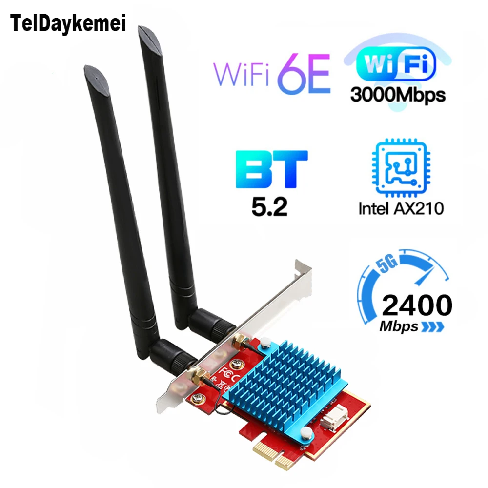 Wi-Fi 6E PCIe Wi-Fi адаптер три Dand 3000 Мбитс Bluetooth 5,2 Intel AX210 карта 2,4G5 ГГц6 ГГц Беспроводная 802.11acax карта для ПК