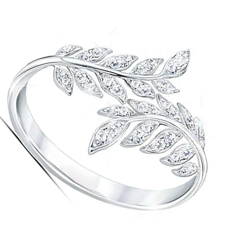 Кольцо с листьями из перьев, модное кольцо, ювелирное изделие, регулируемое кольцо для женщин и девушек, подарки на день рождения, подарок на день Святого Валентина, серебряное кольцо