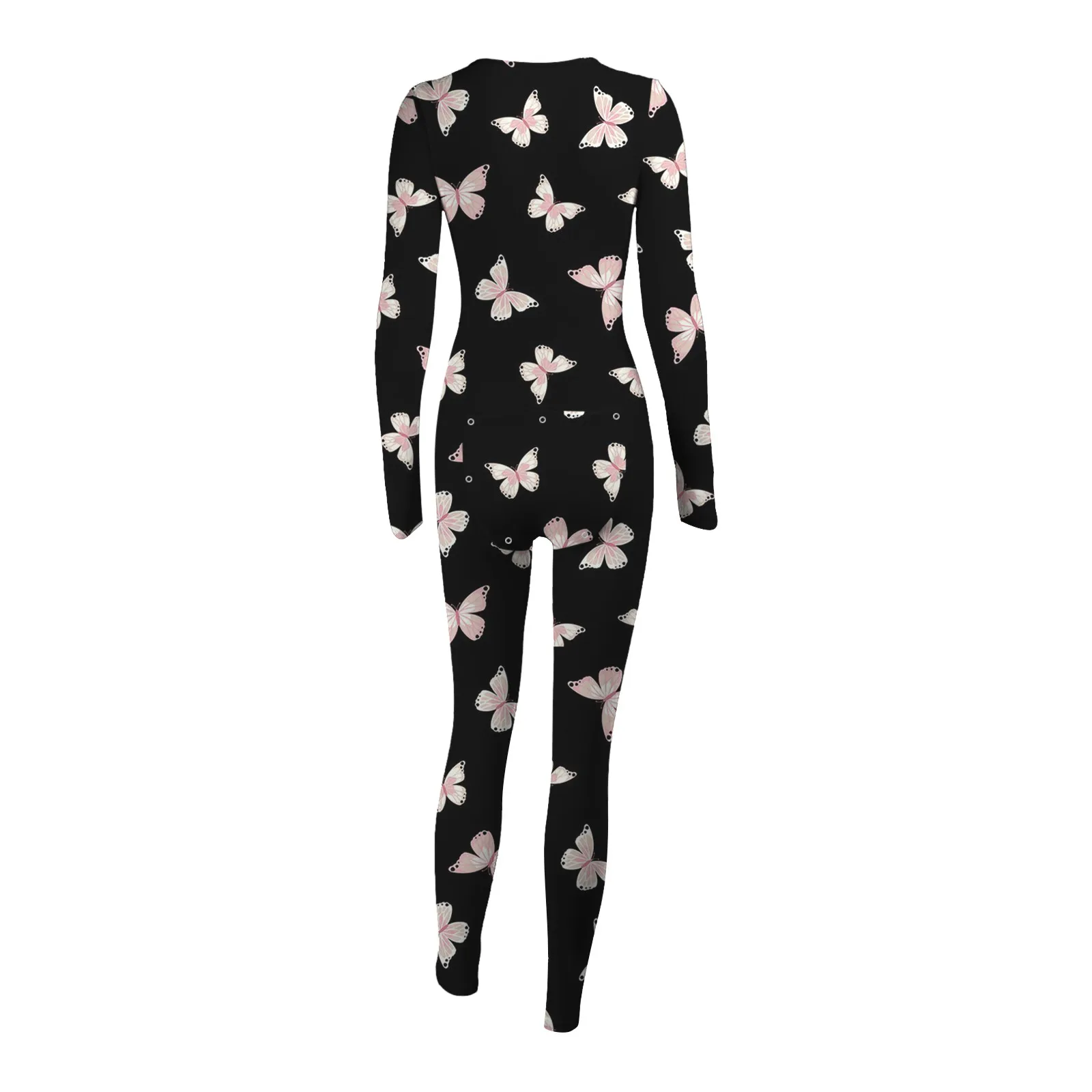 Для женщин на пуговицах с принтом «бабочка» функциональный отворот на пуговицах комбинезон для взрослых