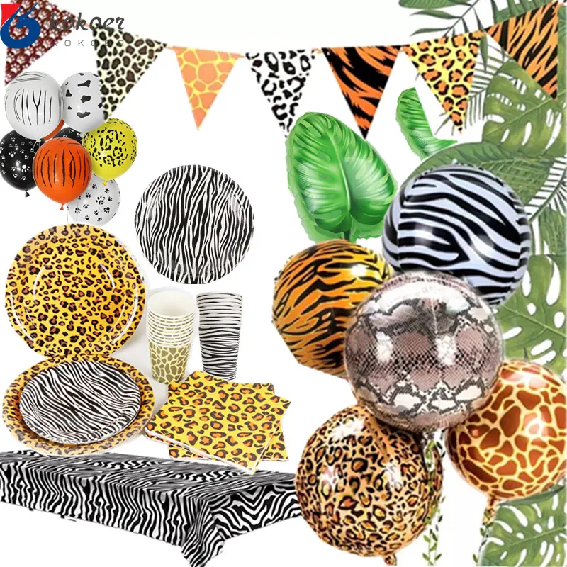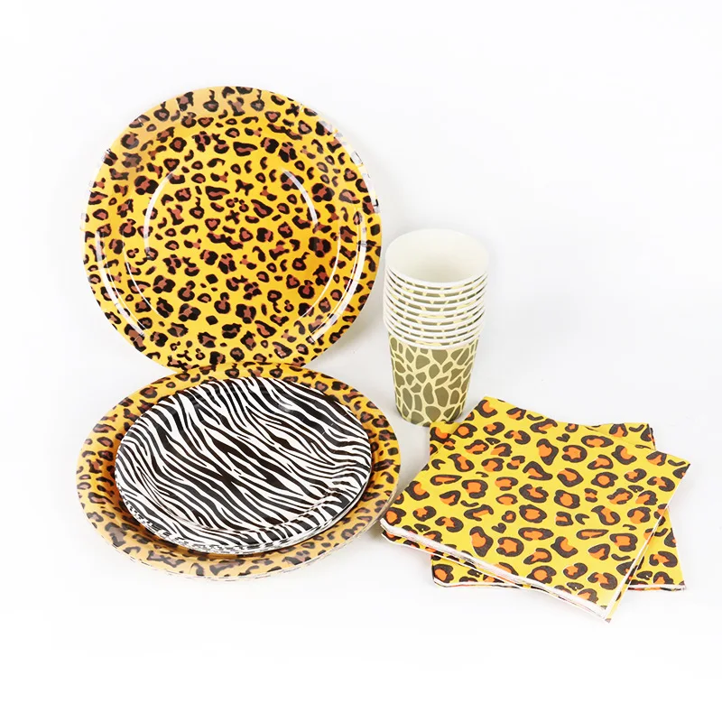 Лесной Животные вечерние леопардовой черно-белой расцветке сафари День рождения вечерние тарелки чашки лесных существ животных леса вечерние поставки