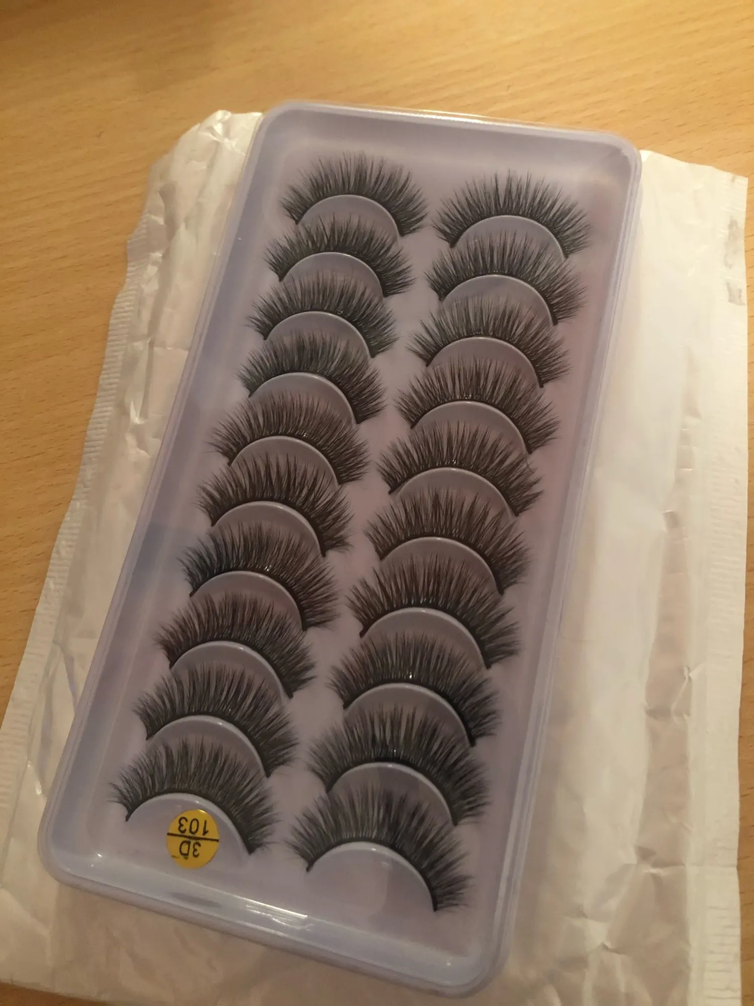товар пришел чуть больше,чем за месяц,никаких задержек по времени не было,положили в почтовый ящик. упаковка целая,реснички не пострадали. они пушистые,единственное...если смотреть на них сбоку,они в 2 яруса,которые не плотно прилегают друг к другу... как будут смотреться пока не могу сказать...