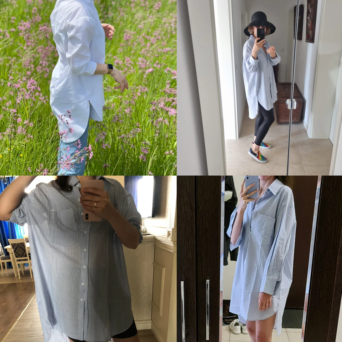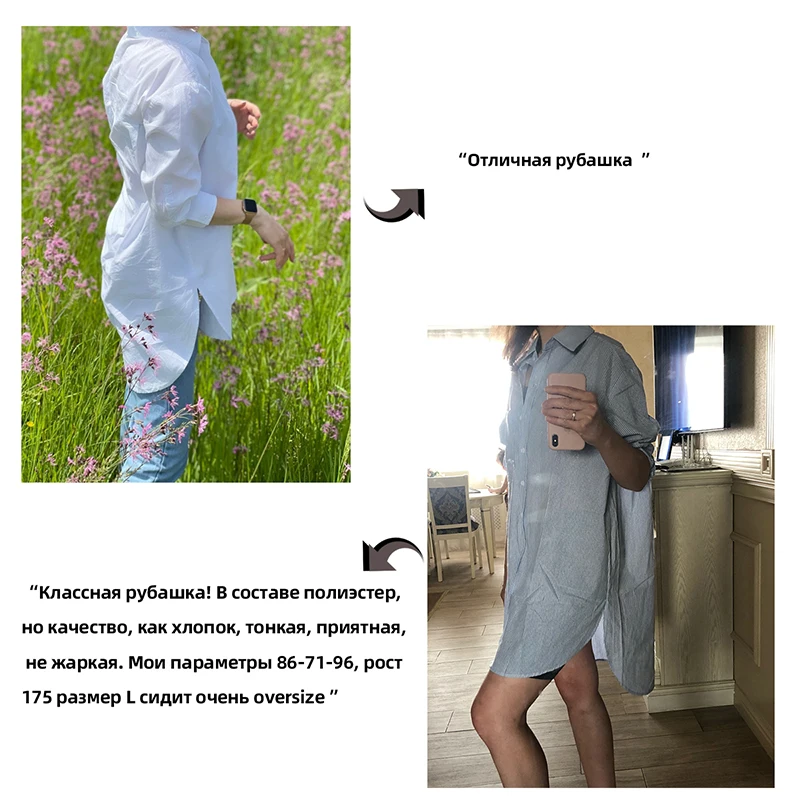 Рубашка супер, легкая, но не сильно просвечивает! На рост 169 размер L скорее всего не получится носить как платье (спереди коротковато), хотя те, кто любит очень мини, может и получится!:) Мне очень понравилась, качество хорошее! У меня достаточно длинные руки, но рукава оказались ок! На размер М, L-ка села орверсайз, как и должна была :)