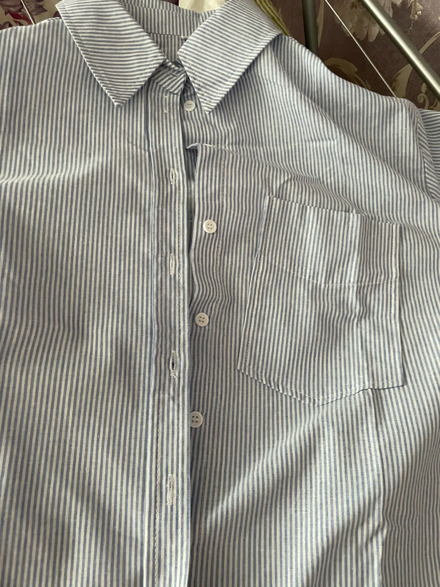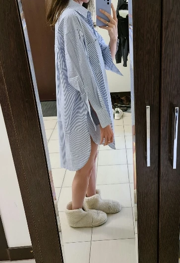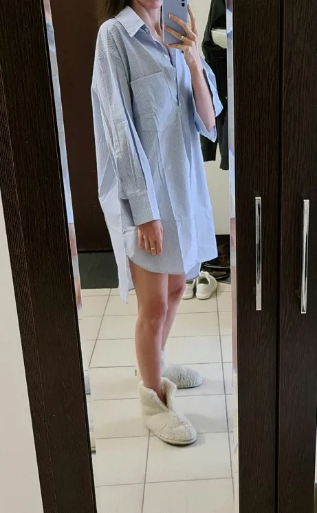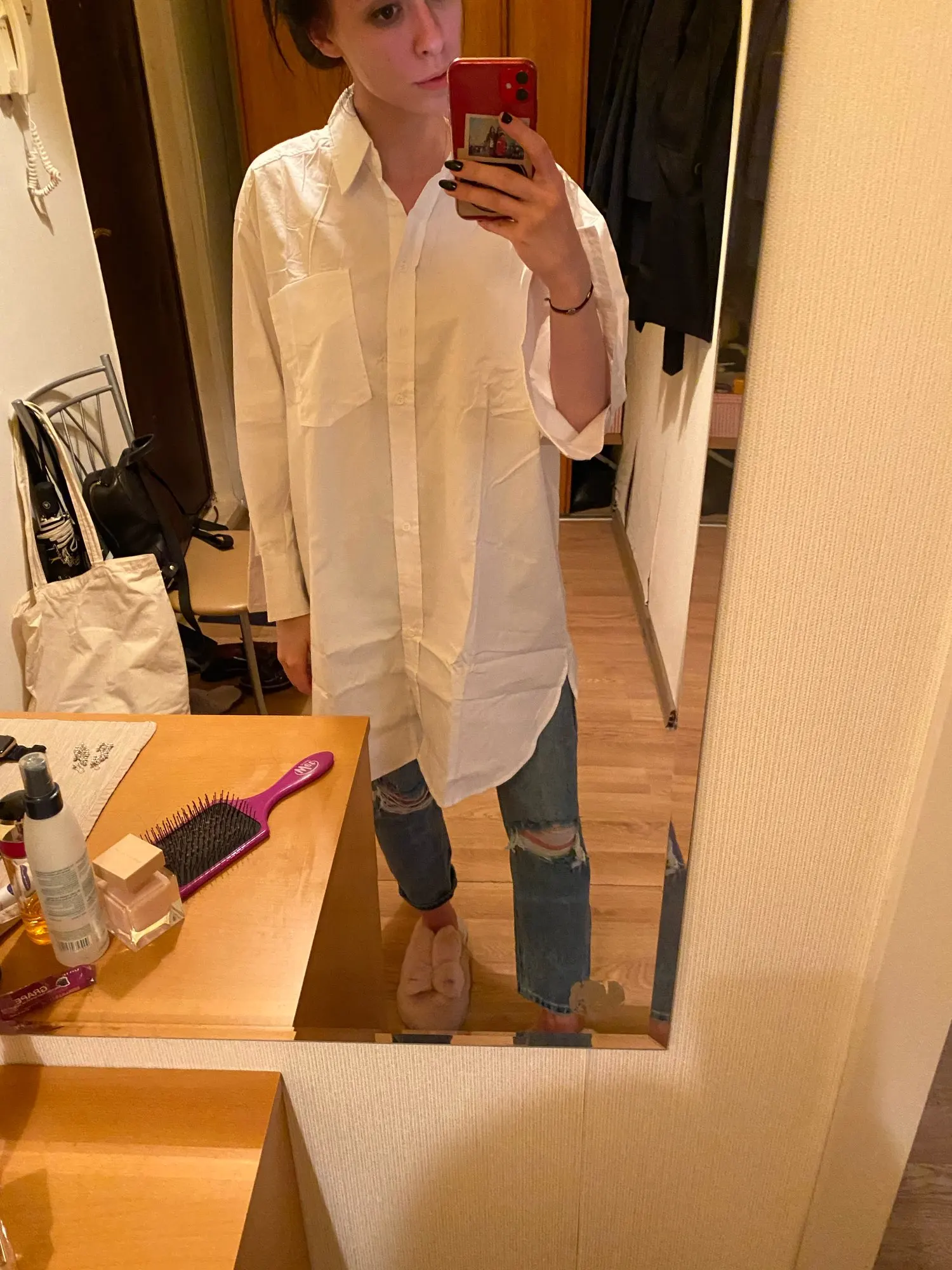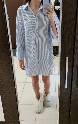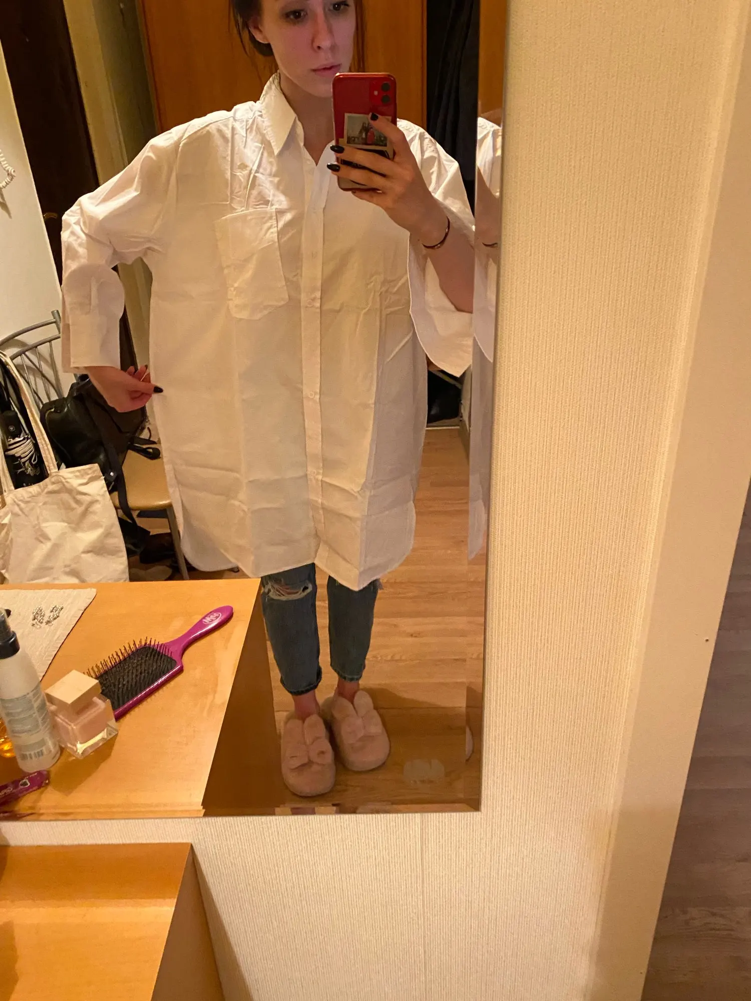 Рубашка очень хорошего качества. Не тонкая. Но и не плотная. Вобщем, норм) стильненькая оверсайз. На рус 42-44 взяла Ми потерялась в ней. Доехала быстро