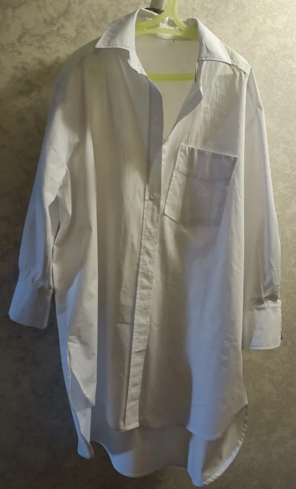 Одна из лучших покупок! Рубашка - восторг! Все как в описании и на фотографиях продавца. Ткань плотная. Рукава отличной длины. Рубашку можнл носить и как основной элемент и как накидку. Доставлена очень быстро. Мои параметры: грудь 100 и рост 172.