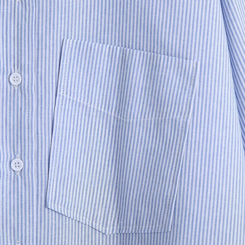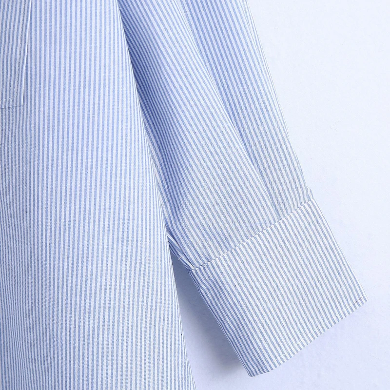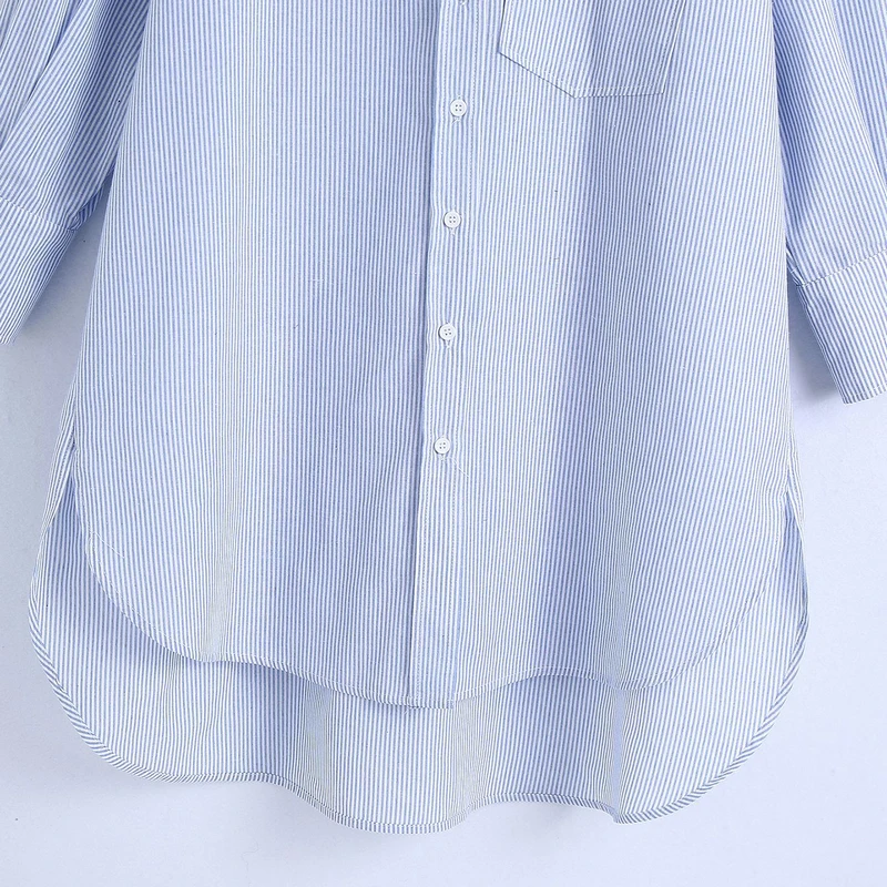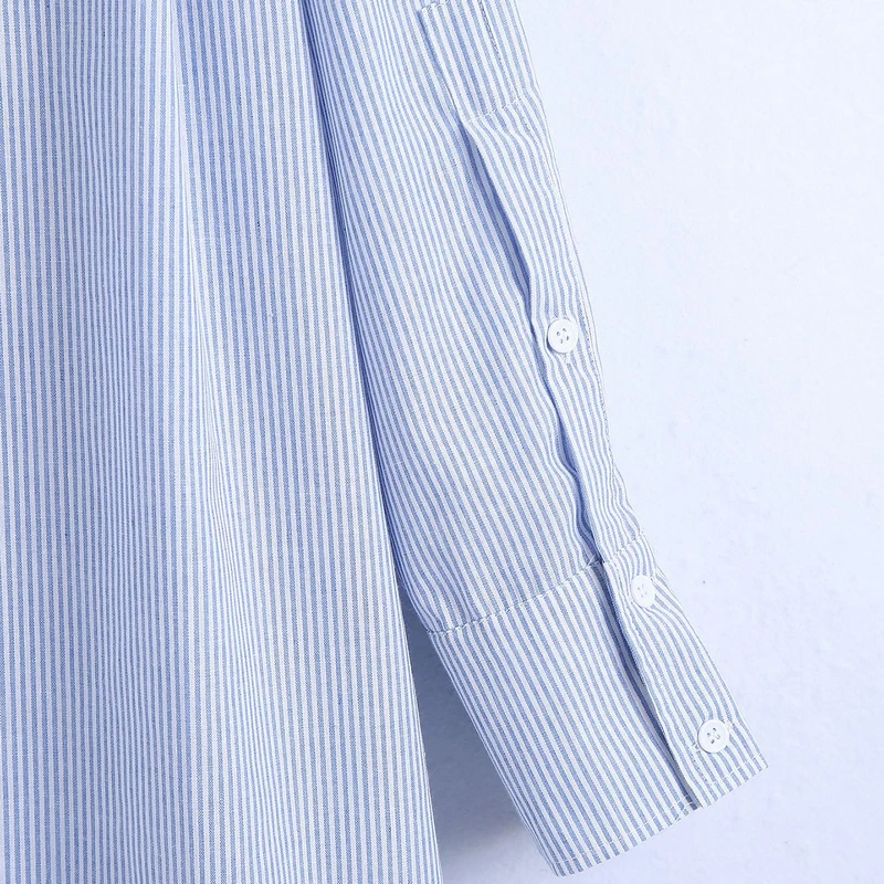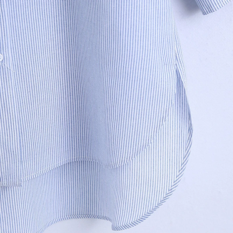 Блузка женская в полоску, с длинными рукавами и отложным воротником