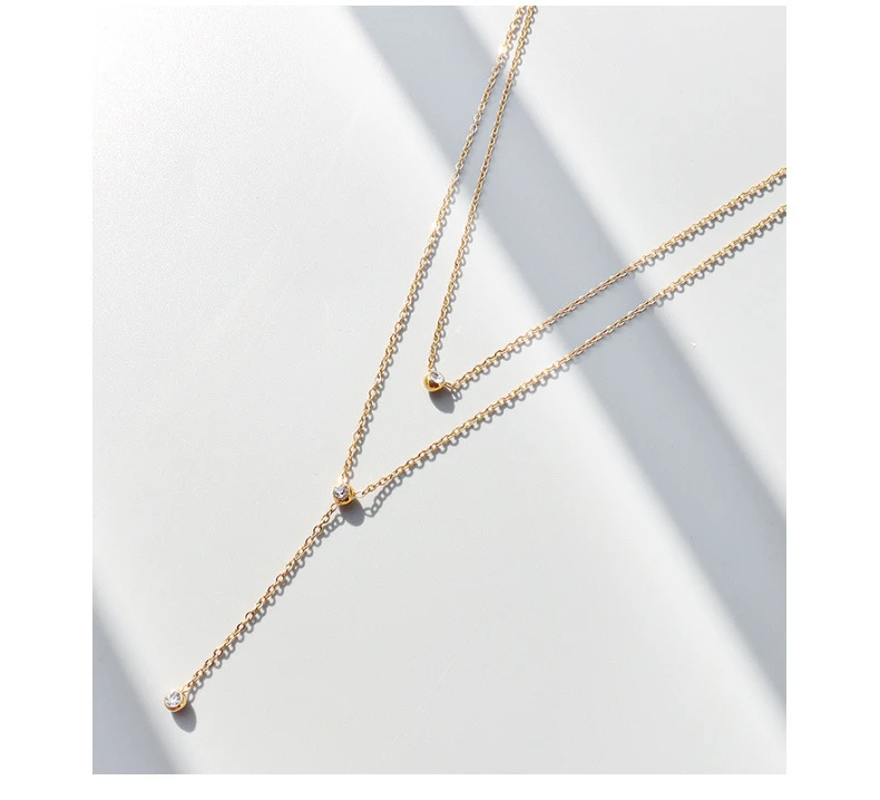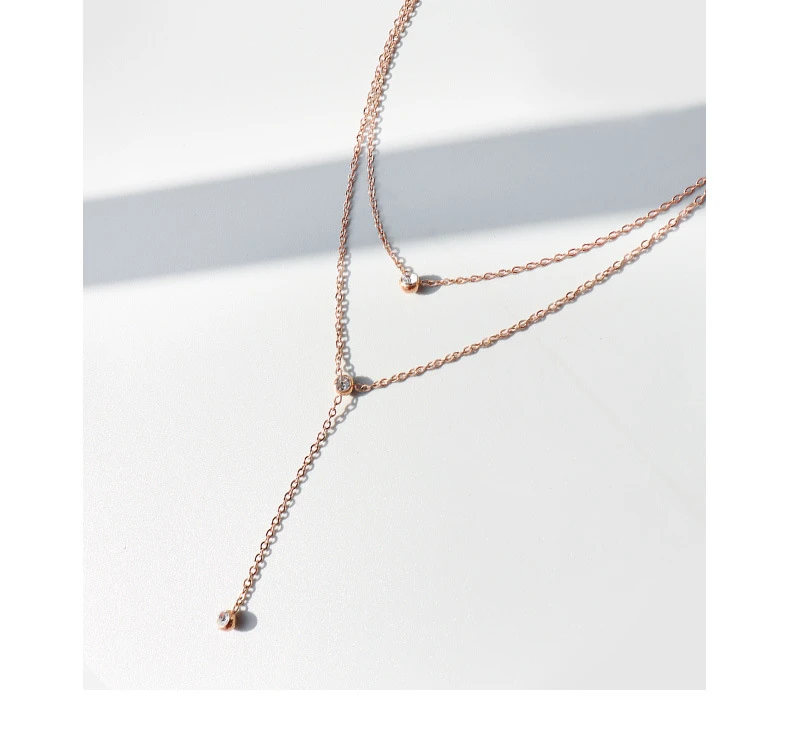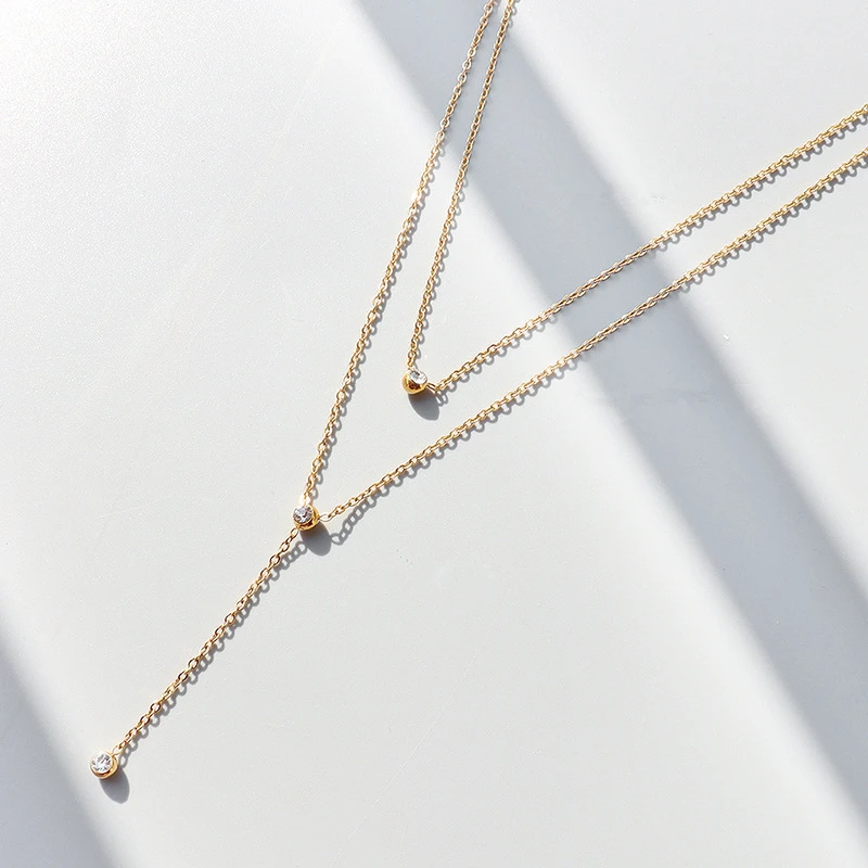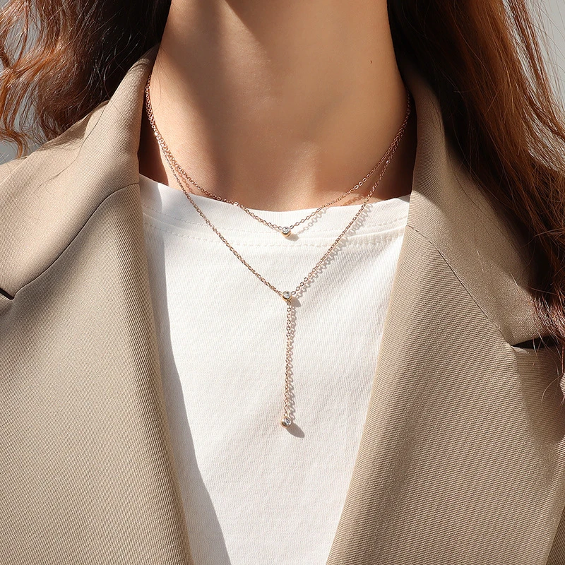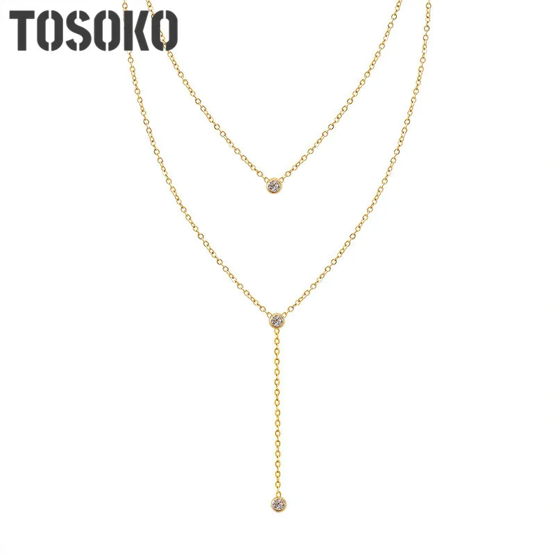 TOSOKO из нержавеющей стали ювелирные изделия нержавеющей стали кисточкой циркон Двойной слоистых ожерелье для женщин в стиле хип-хоп, цепочка с кулоном, BSP883