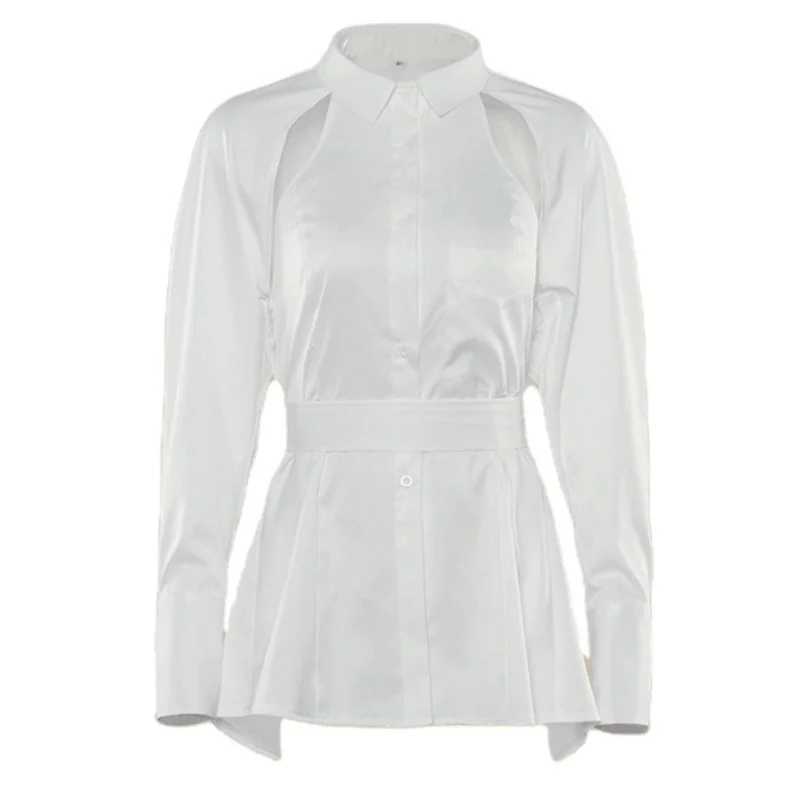 Женские рубашки с разрезом на спине DEAT, приталенные рубашки с длинным рукавом, высокой талией и отложным воротником, уличная одежда, новинка весны 2022, XQ244