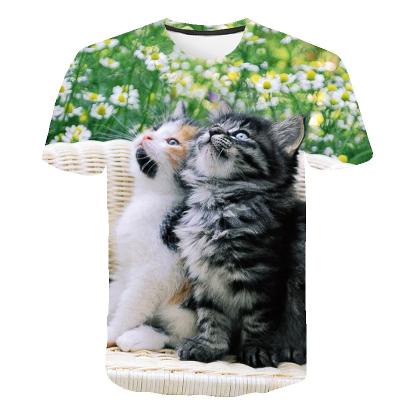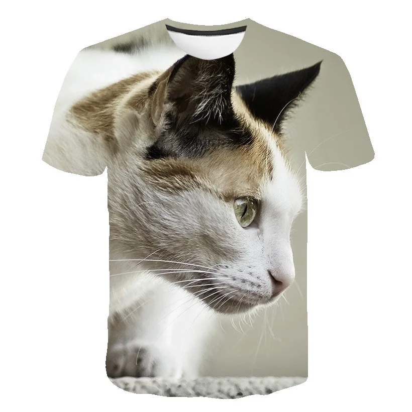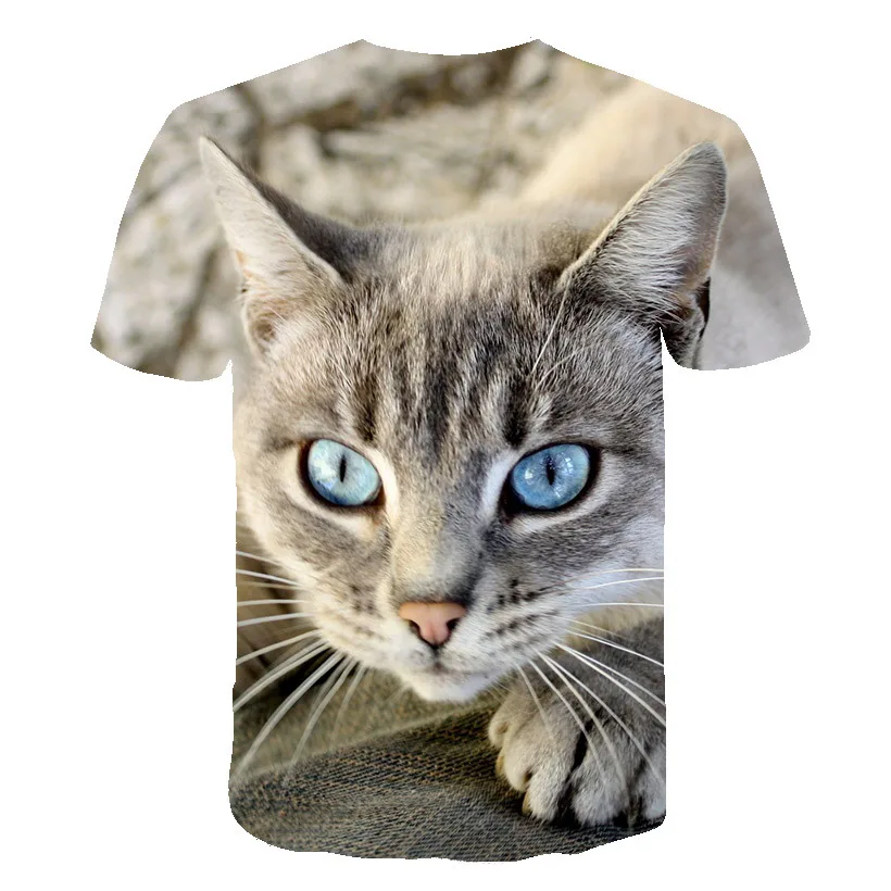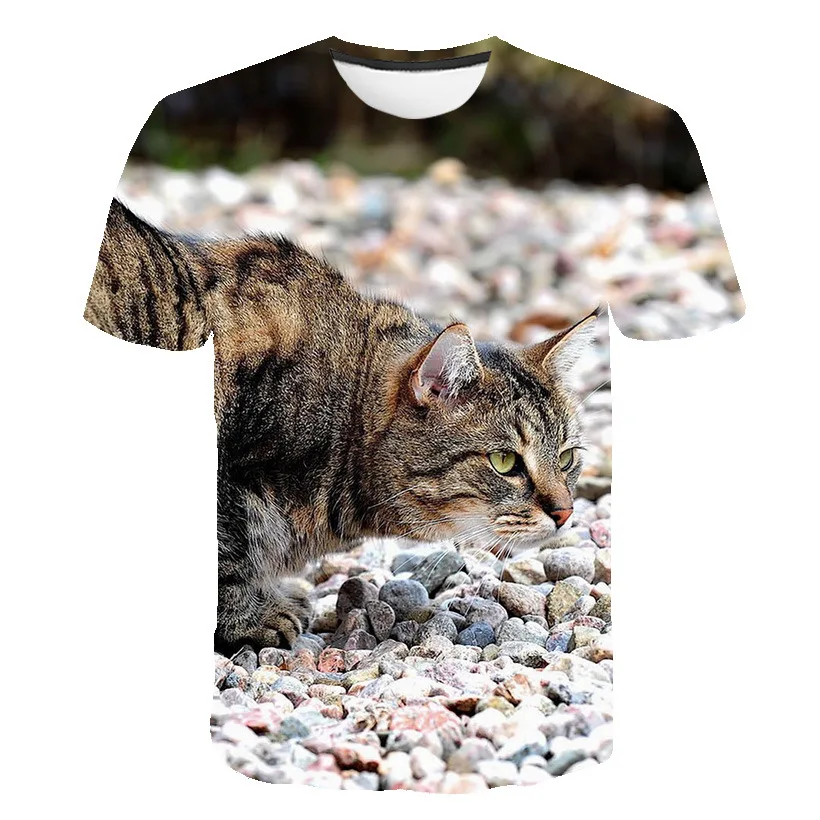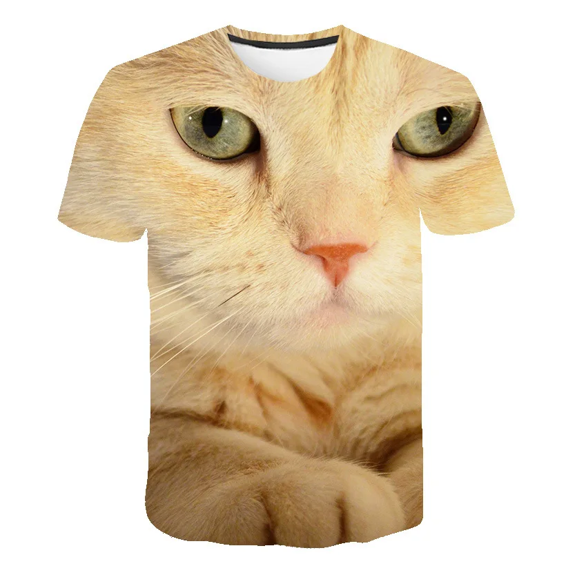 Детская футболка с 3D-принтом мультяшного кота для игр, уличная одежда унисекс с круглым вырезом для мальчиков и девочек, футболка с коротким рукавом в стиле Харадзюку, Новинка лета 2021