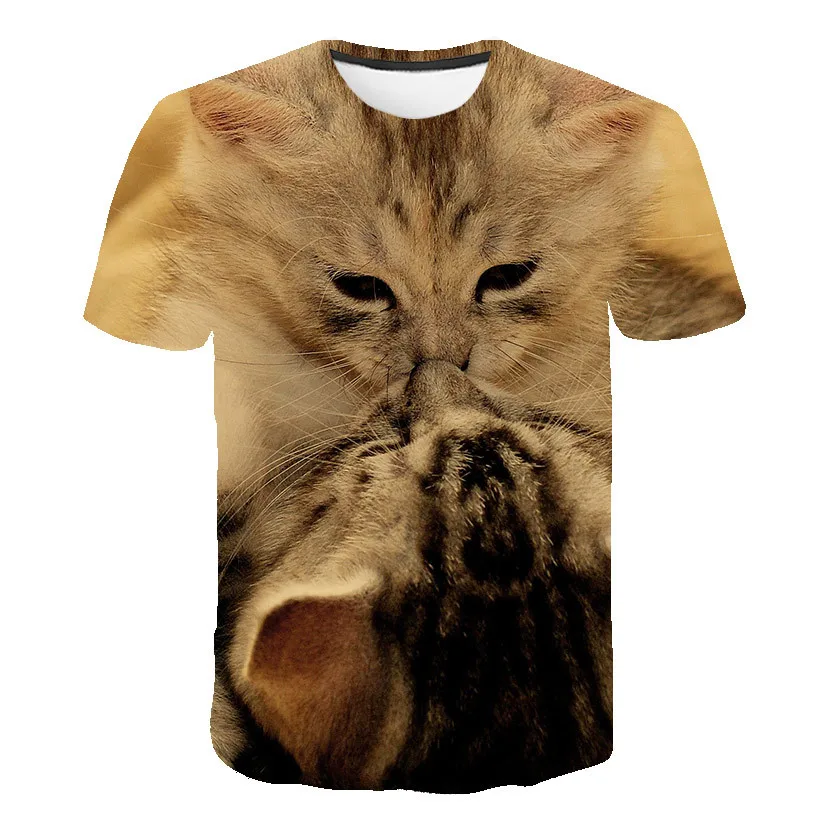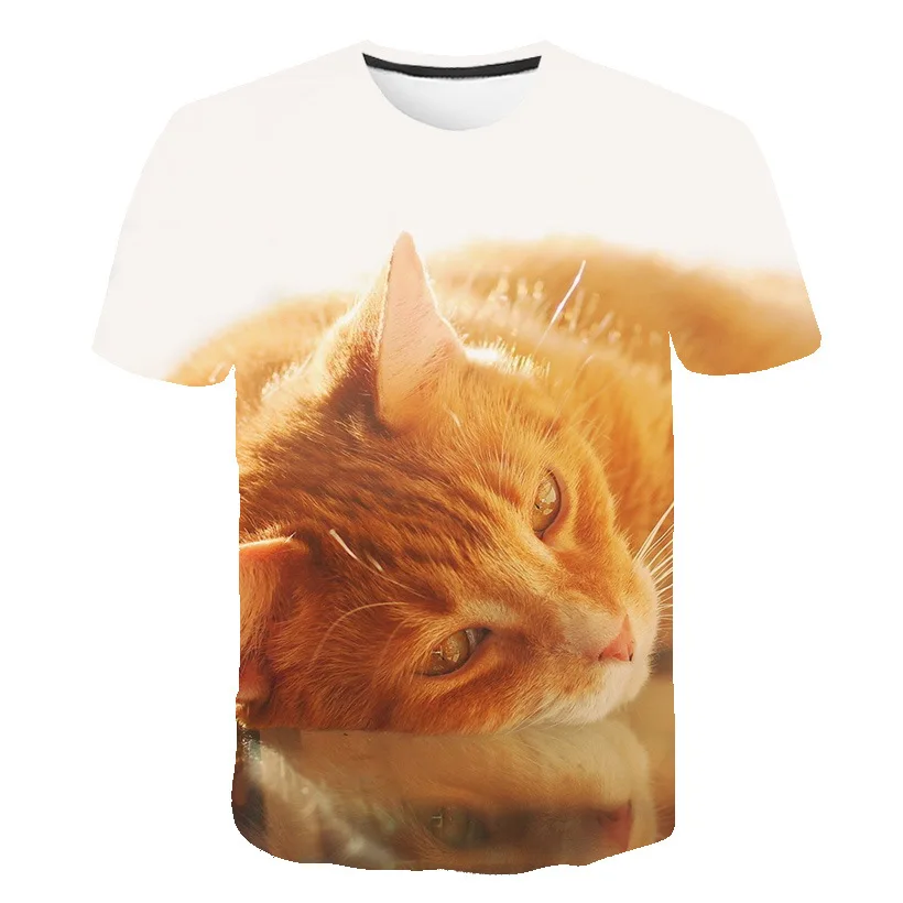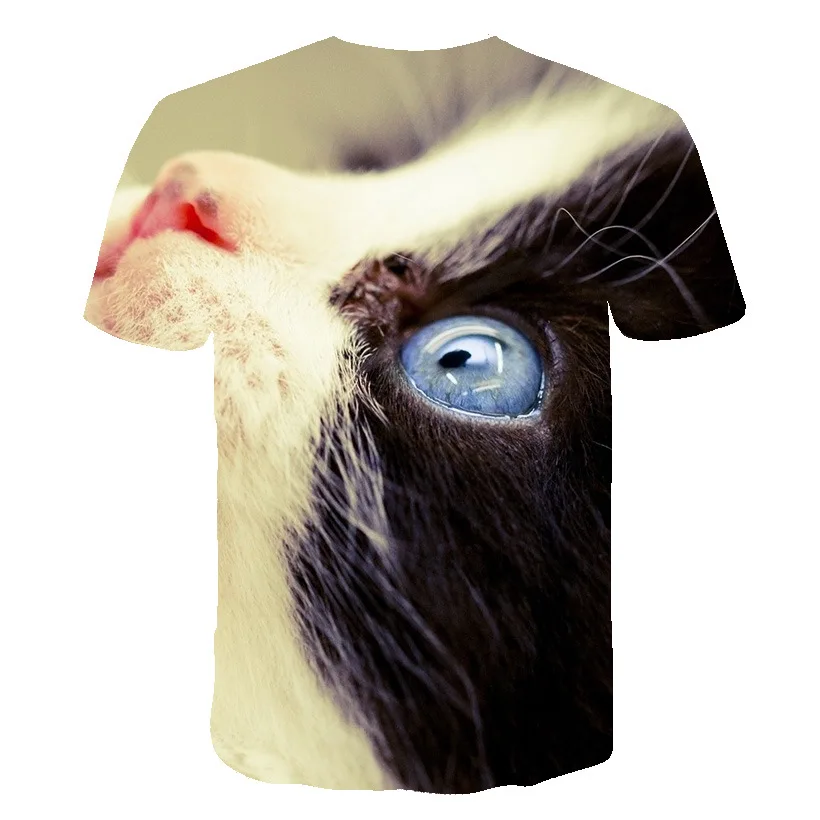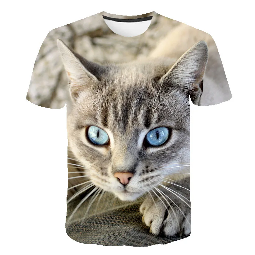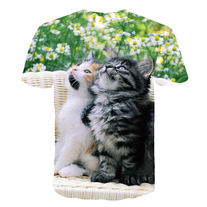 Детская футболка с 3D-принтом мультяшного кота для игр, уличная одежда унисекс с круглым вырезом для мальчиков и девочек, футболка с коротким рукавом в стиле Харадзюку, Новинка лета 2021