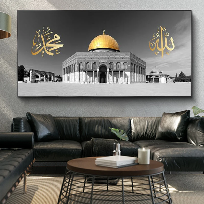 Черно-белый исламский купол золотой камень стена Аллаха искусство холст живопись плакаты и принты настенные картины для домашнего декора