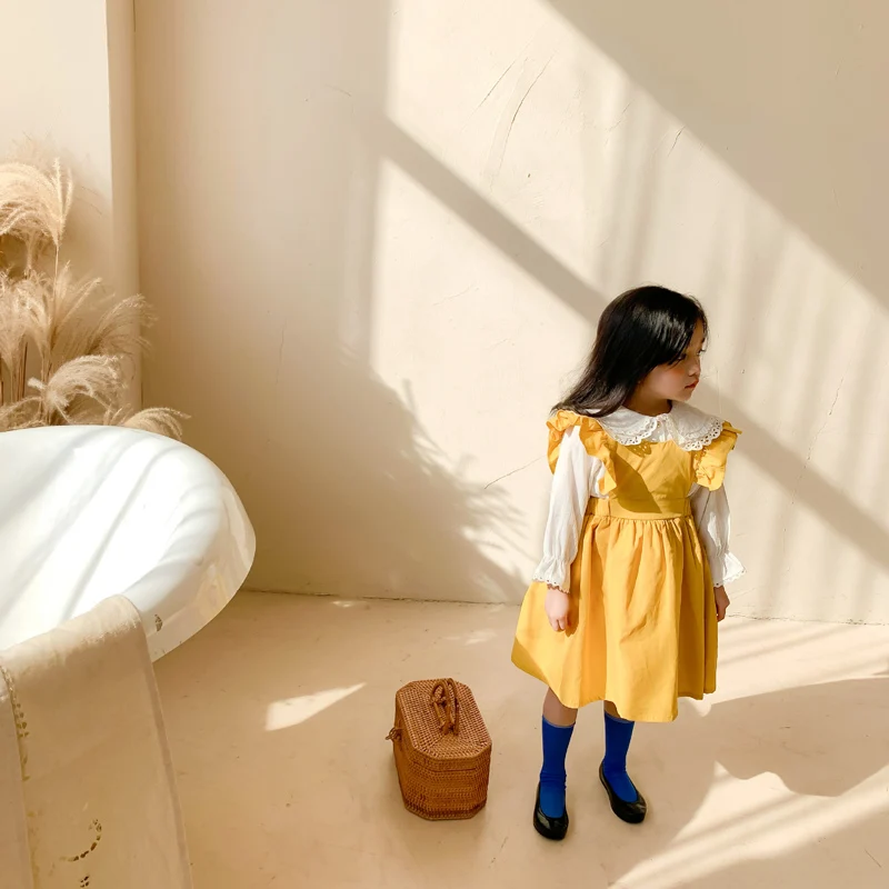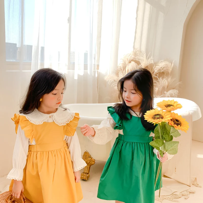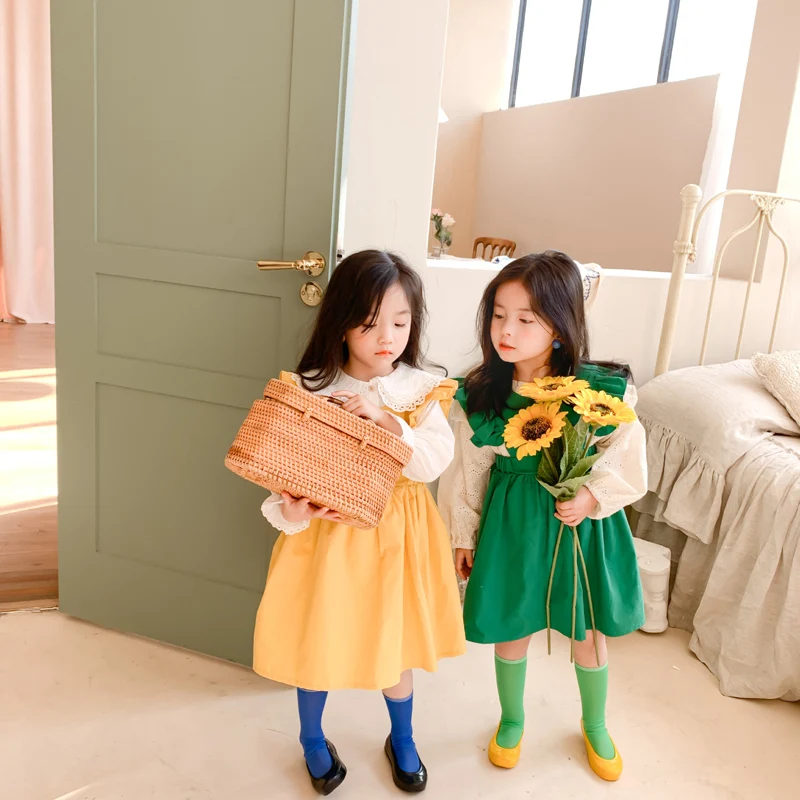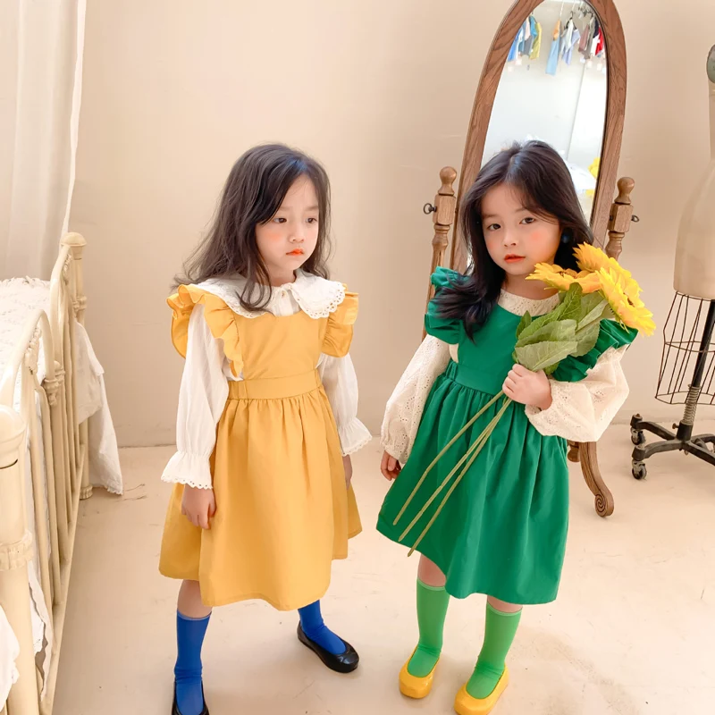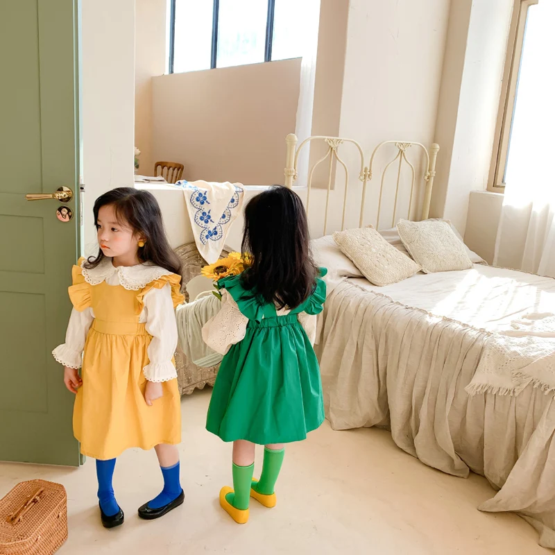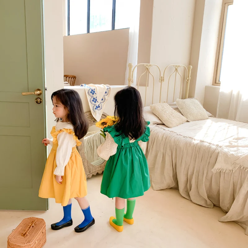 MILANCEL, 2021, Осенняя детская одежда, платье с рюшами на рукавах для девочек, модная Корейская одежда для девочек