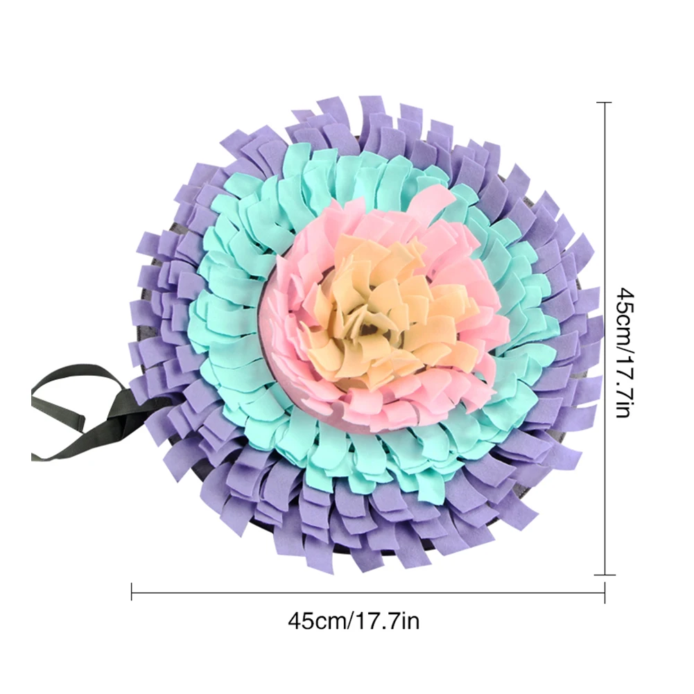 1. Тренировочный Коврик-пазл: на нюхательный коврик имитирует охоту за едой на траве и полях, что удовлетворяет естественное любознательность собаки и повышает ее превосходное чувство запаха. Способствуют умственным и физическим упражнениям, снижая стресс.2. Дрессировка табака: 10 минут табака = 1 час бега на открытом воздухе, может помочь собакам снять стресс и расслабиться, когда вы оставите его/она одна дома.3. Безопасность и удобство: красочный дизайн с удовольствием, изготовлен из экологически чистой ткани, прочный и нетоксичный, не разрывается на кусочки, 100% безопасен для ваших питомцев, обеспечивает здоровье вашей собаки.4. Простота в уходе: вы можете бросить этот коврик в стиральную машину и забыть об этом. Можно стирать в машине и сушить в стиральной машине.5. 100% гарантия: Если вы недовольны или сомневаетесь в нашей продукции, пожалуйста, свяжитесь со службой поддержки клиентов как можно скорее, мы предоставим вам лучший сервис, чтобы гарантировать вашу 100% Удовлетворенность.Описание:Это игрушка-пазл для домашних животных dog нюхательный коврик, Тренировочный Коврик для нюхания, коврик для кормления, для снятия стресса с собаки. Этот коврик для кормления собак-отличный способ для собаки, у которой есть тонны энергии, использовать свой мозг во время ужина, он может носить их так же, как и на прогулке. Спрячьте угощения или маленькую игрушку в нюхательный коврик, и пусть ваши собаки это узнают, это помогает тренировать собаке чувство запаха, слить энергию вашей собаки и похудеть.Параметры:Название: Тренировочный Коврик с большими цветами для кормления носом собаки, коврик для поиска работы собаки, навыки естественного запаха, предотвращение повреждения мебелиРазмер: около 45*45 см/17,72*17,72 дюймаЦвет: синий край, фиолетовый крайВес: около 200 гМатериал: полиэстерСписок:1 * коврик для животныхСоветы:Если вы остались недовольны или сомневаетесь в нашей продукции, пожалуйста, как можно скорее свяжитесь со службой поддержки клиентов, мы предоставим вам лучший сервис, чтобы гарантировать 100% Удовлетворенность.