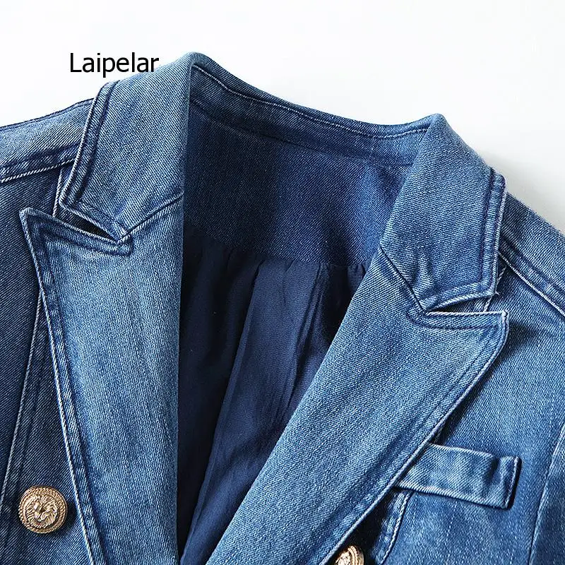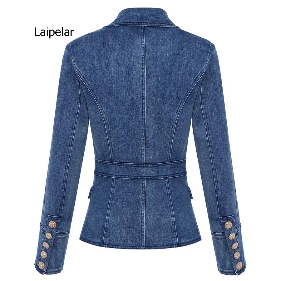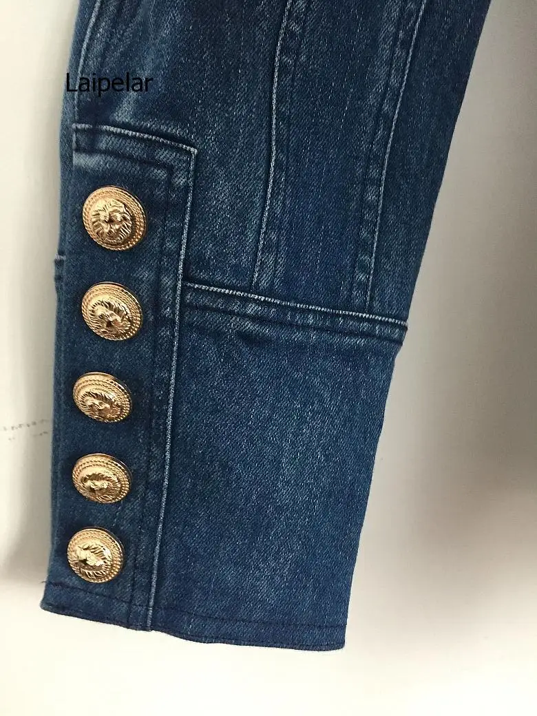 Женский джинсовый Блейзер, двубортный блейзер с металлическими пуговицами в виде льва, верхняя одежда, 2021