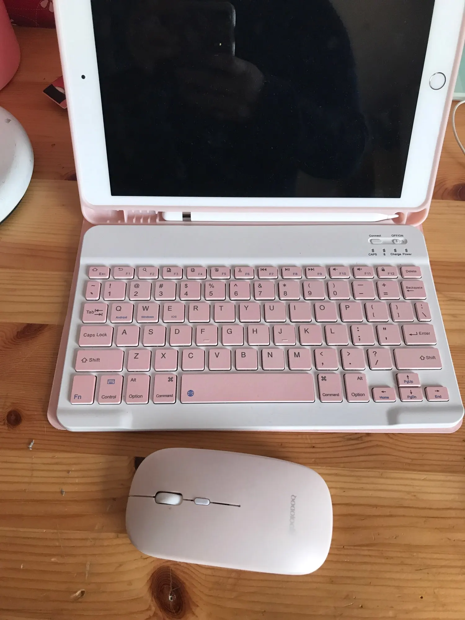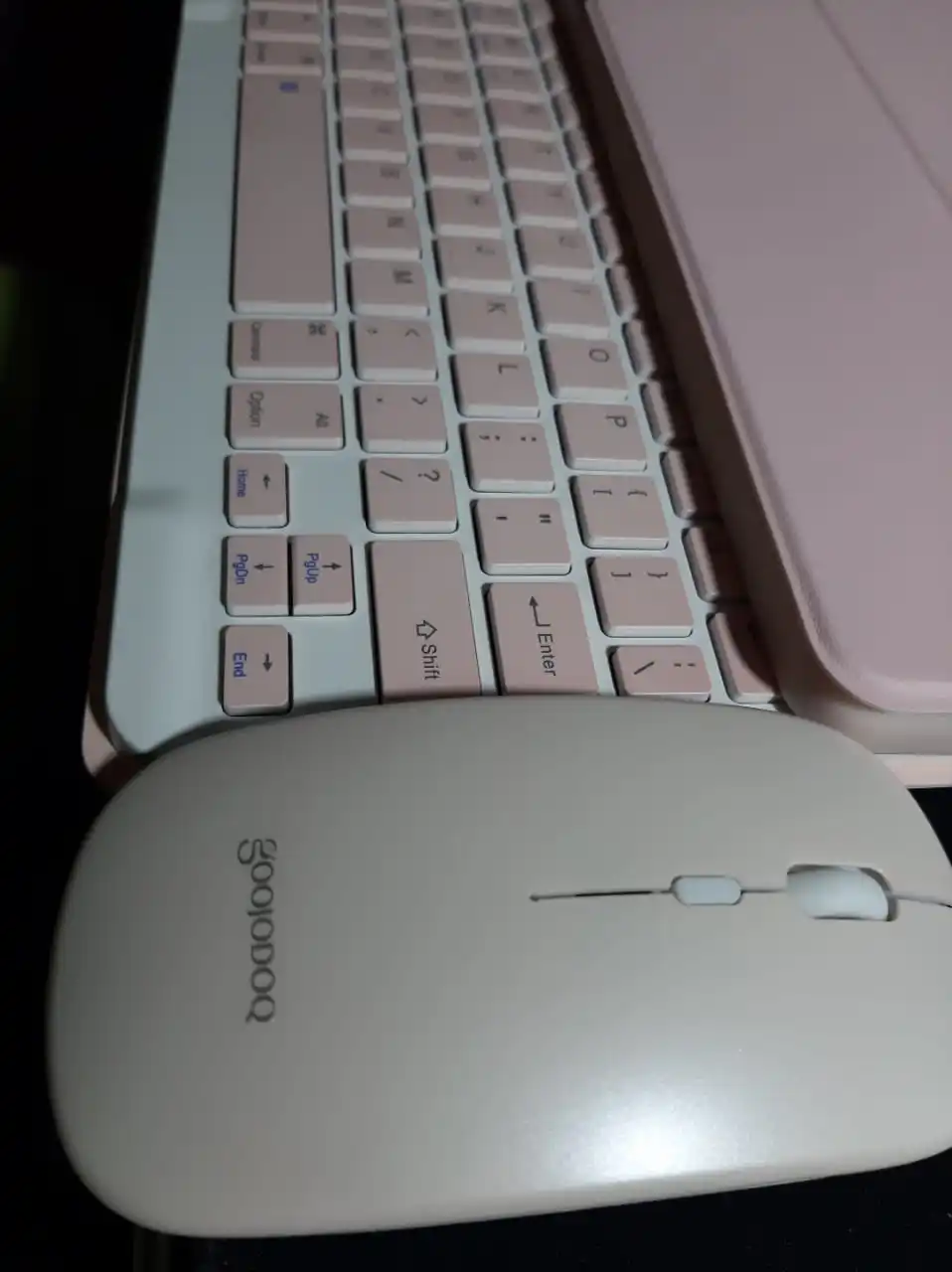 Он впечатляющий, хорошего качества и намного больше, чем я ожидал, цвет красивый и размер идеальный. Он поставляется супер завернутым и безопасным, чтобы он не был поврежден. Мышь поставляется в отдельной коробке с зарядным устройством и более кремового цвета, отдельная мышь работает для USB на компьютере, так что это здорово, и клавиатура поставляется с зарядным устройством, и они работают отлично оба. Розовый клавиатура с белым-это жемчужно-розовый, и он звучит великолепно, и когда вы кладете его в корпус, он включается, поэтому он не скользит и не падает. Ipad, когда вы кладете его на поверхность, тоже не скользит, и корпус действительно служит для размещения ipad и клавиатуры вместе, когда он закрыт. Рекомендуется 100% отдельно Прибыл супер быстро!