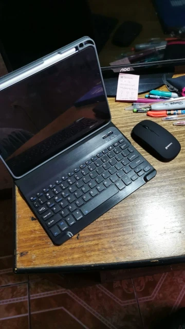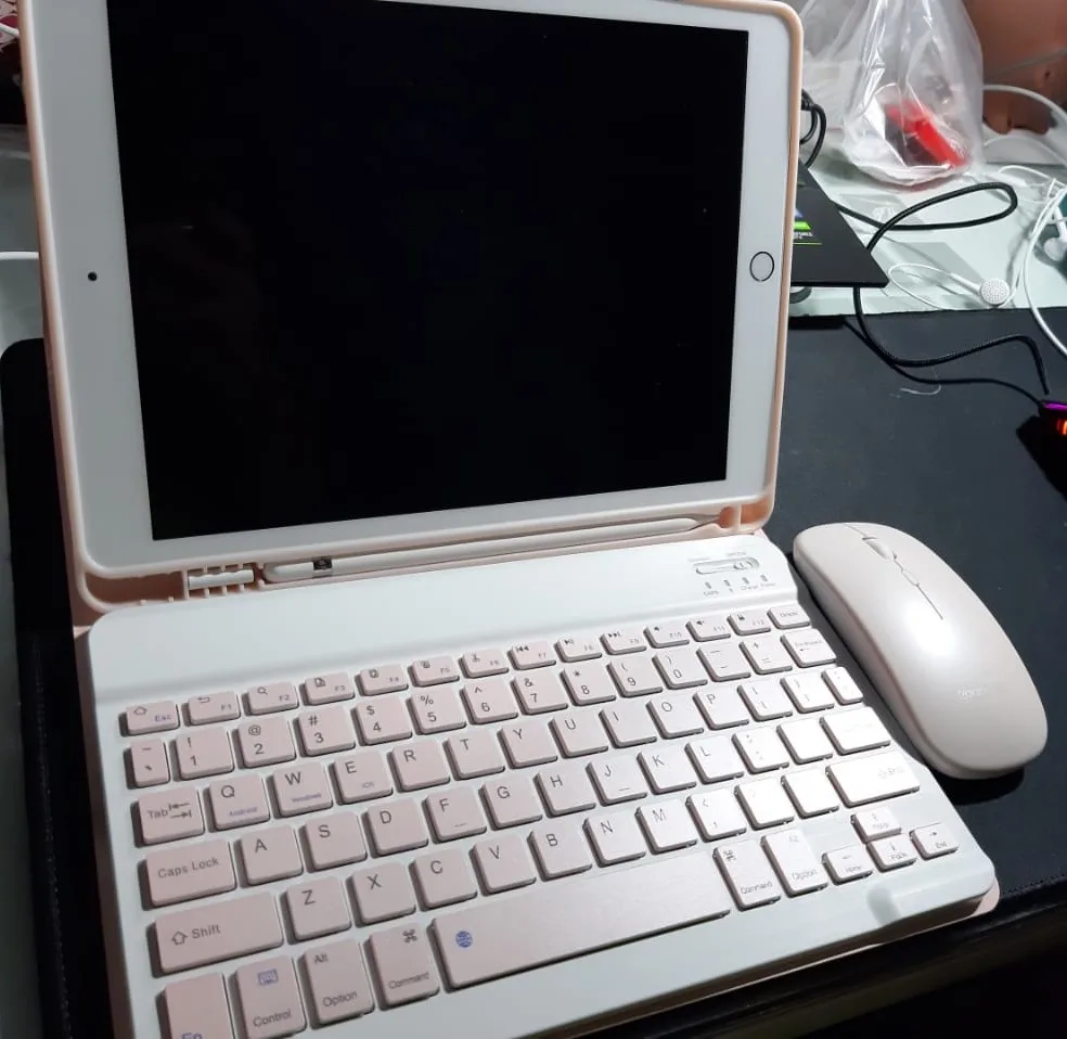 Оборудование, как видно на изображении, легкая клавиатура, очень хорошая крышка (хорошая для защиты iPad), легкая и красивая мышь, быстрое соединение с iPad 10,2 (8va), заказ занял ровно две недели, чтобы прибыть в чиллан, Чили.