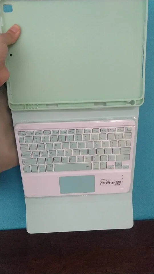 Продукт похож на описание, молоток внутренней крышки мягкий на ощупь, а задняя часть выполнена из силикона, выглядит хорошо и устойчиво. Это очень хорошо заявлено, чтобы писать с клавиатурой, но я бы не рекомендовал его использовать Apple pencil, потому что чехол не может быть размещен в другом положении, и лично я не могу писать с остановленным ipad, мне нужно, чтобы он спел, кроме этой детали все было идеально. Клавиатура работает отлично, она быстро пишет, а прикосновение к клавишам в порядке, я был удивлен, что правда не доверяла ему. Ключ не настроен, ничего не нужно делать, это буква рядом с буквой L. Мне показалось, что я прочитал комментарий в оценке, в котором говорилось, что наклейка пришла, но ничего не пришло ко мне, может быть, вы должны спросить продавца перед отправкой, Я не знаю правду. Но хотя наклейка не приходит, она быстро привыкает к использованию ключа. Мышь работает отлично, я попробовал ее с ipad и с моим ноутбуком.