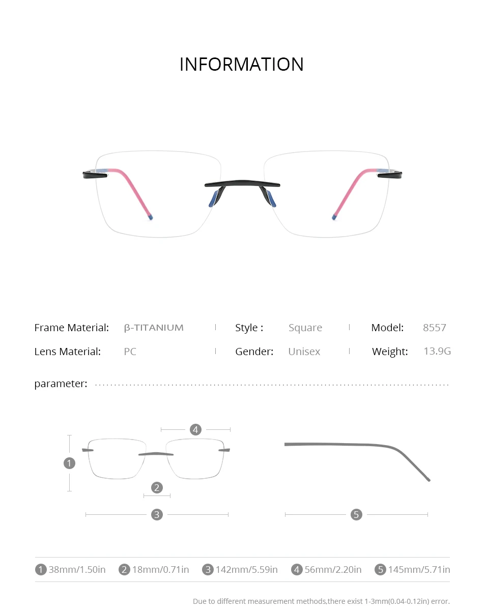 Оправа унисекс для очков для чтения из чистого титана, винтажная оправа без оправы, антибликовые очки для чтения по рецепту, женские и мужские