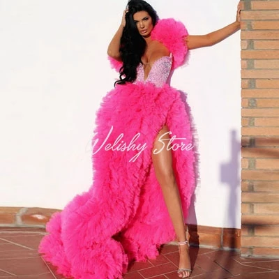 Розовое Пышное Тюлевое платье с оборками Сексуальные Платья для бер...