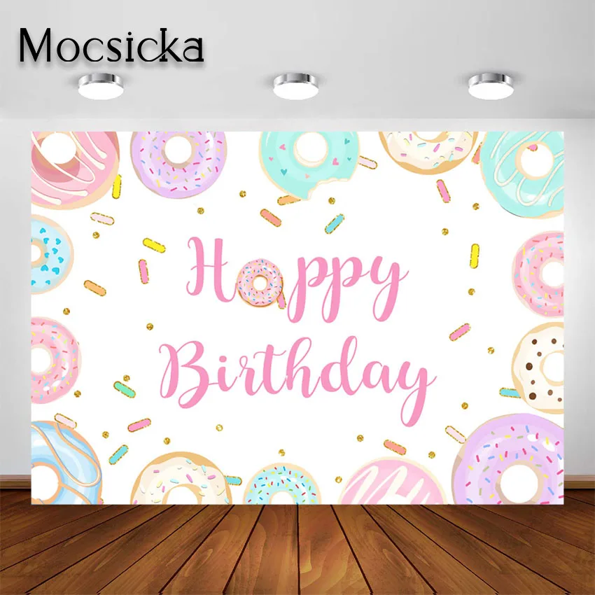 Фон Mocsicka для фотосъемки с изображением пончиков для дня рождения для девочек