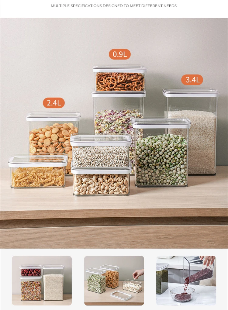 Пластиковые герметичные банки 3 разных емкости, кухонный ящик для хранения, прозрачная канистра для еды, новый прозрачный контейнер для сохранения свежести