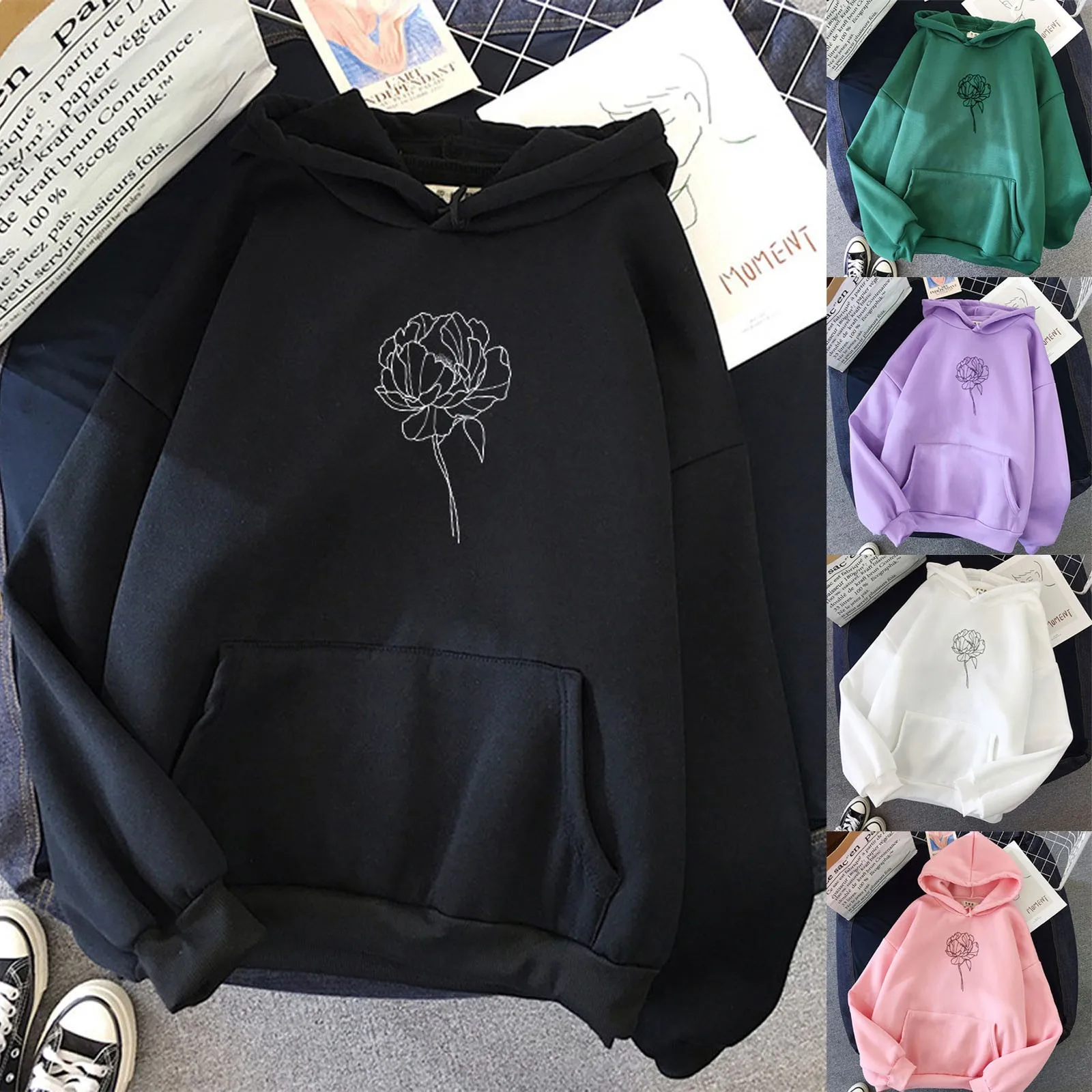 Женская толстовка с капюшоном и цветочным принтом, осень-весна