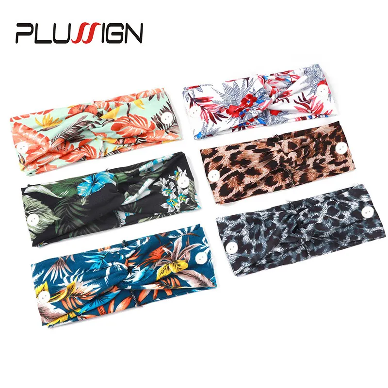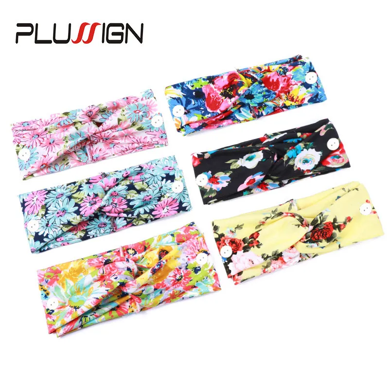 Повязка на голову Plussign 1 шт.лот, Модная хлопковая бандана, повязка на голову с цветочным принтом, с пуговицами для маски, повязка на голову с цветком для париков