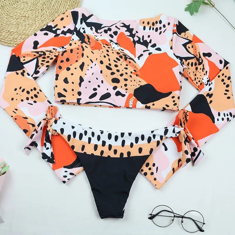 Женский купальник для серфинга, бикини с длинным рукавом, с тигровым принтом, пуш-ап, летний купальный костюм, бикини из двух предметов, 2021