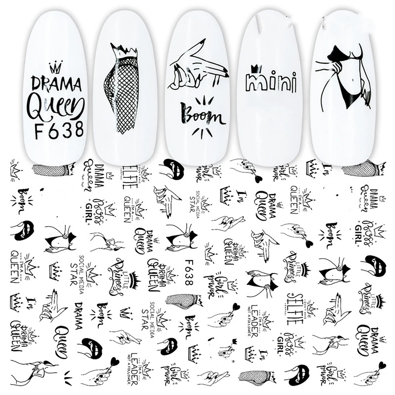 Новинка 2020, 1 шт., черно-белые 3D наклейки для ногтей, сексуальны...