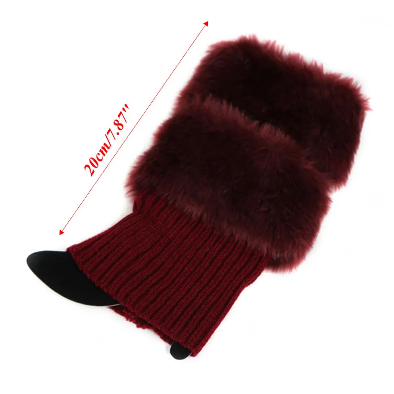 Женские зимние теплые вязаные крючком носки с меховой отделкой