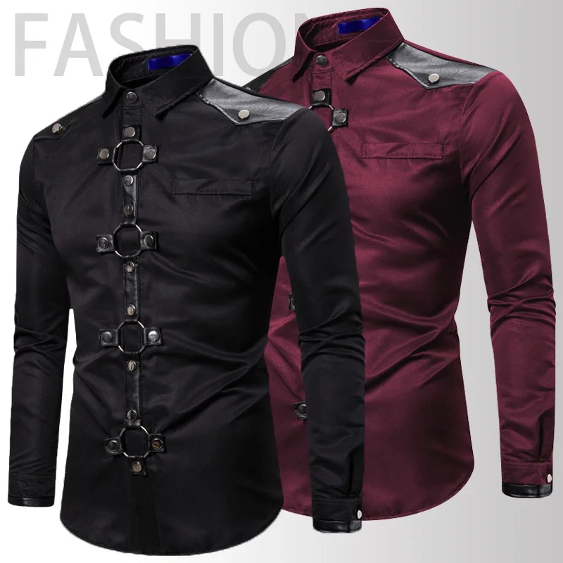Мужская рубашка с длинным рукавом, с заклепками, в готическом стиле