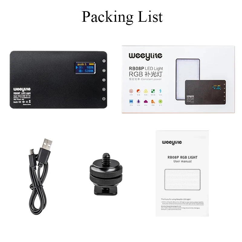 VILTROX Weeylife RB08P RGB 2500K-8500K мини-видео светодиодный светильник заполнясветильник свет со встроенной батареей для телефона камеры студийной съемки
