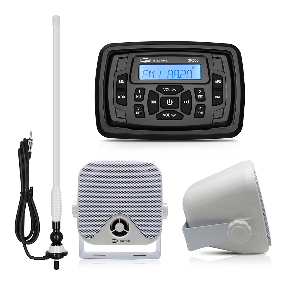 Морской Bluetooth аудио лодка стерео радио приемник Автомобильный MP3-плеер + 4-дюймовый морской водонепроницаемый динамик для квадроцикла Спа бассейна + FM AM антенна