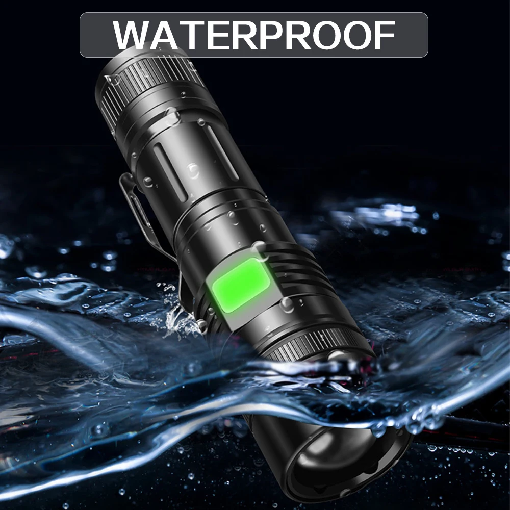 Концепция дизайна:Мощный светодиодный фонарикУвеличьте 1*18650 или 1*26650 аккумуляторный отсек, чтобы увеличить время работы.Дисплей емкости аккумулятора, телескопический зумМикро-usb для компьютера usb, Автомобильный USB, usb-разъем для зарядки, зарядный фонарикИзготовлен из авиационного алюминиевого сплава прочный HAIII военный класс Жесткий анодированныйВодонепроницаемый в соответствии с IPX-5, водостойкий, может использоваться в дождливую погоду, но не может положить его в водуПодходит для работы, охоты, альпинизма, рыбалки, кемпинга и активного отдыха и т. д.Ударопрочный до 2 метров.