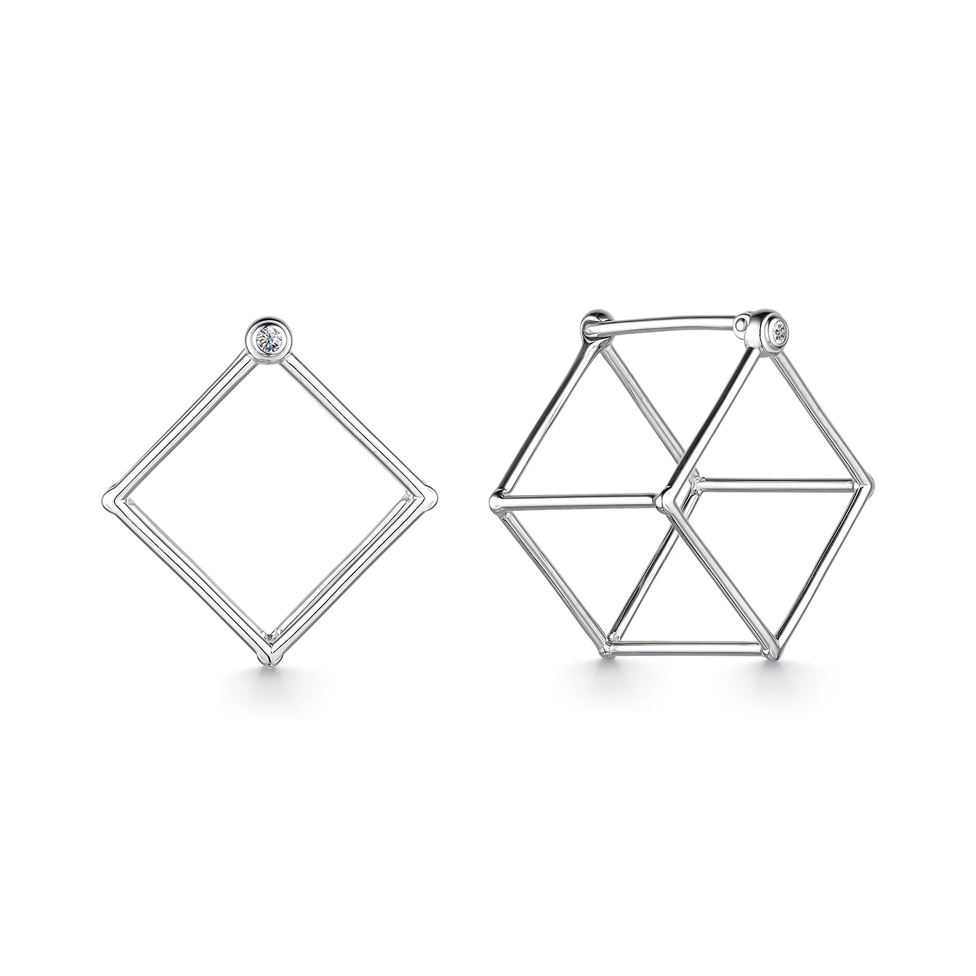 Женские серьги 2021 тренд из родированного серебра 925 с бриллиантом.
