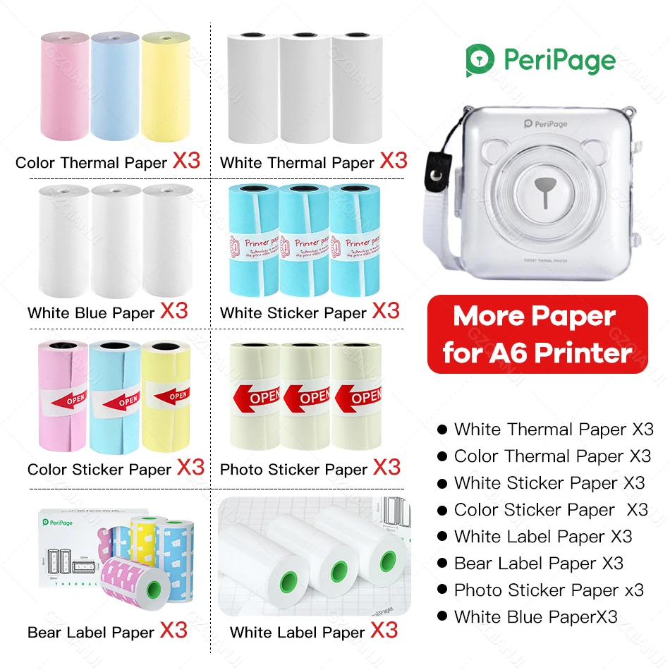 Бумага Peripage A6, 58 мм, Стикеры для этикеток, цветные фотопринтеры, бумажные этикетки Peripage A6, бумага s в рулоне, цветная наклейка