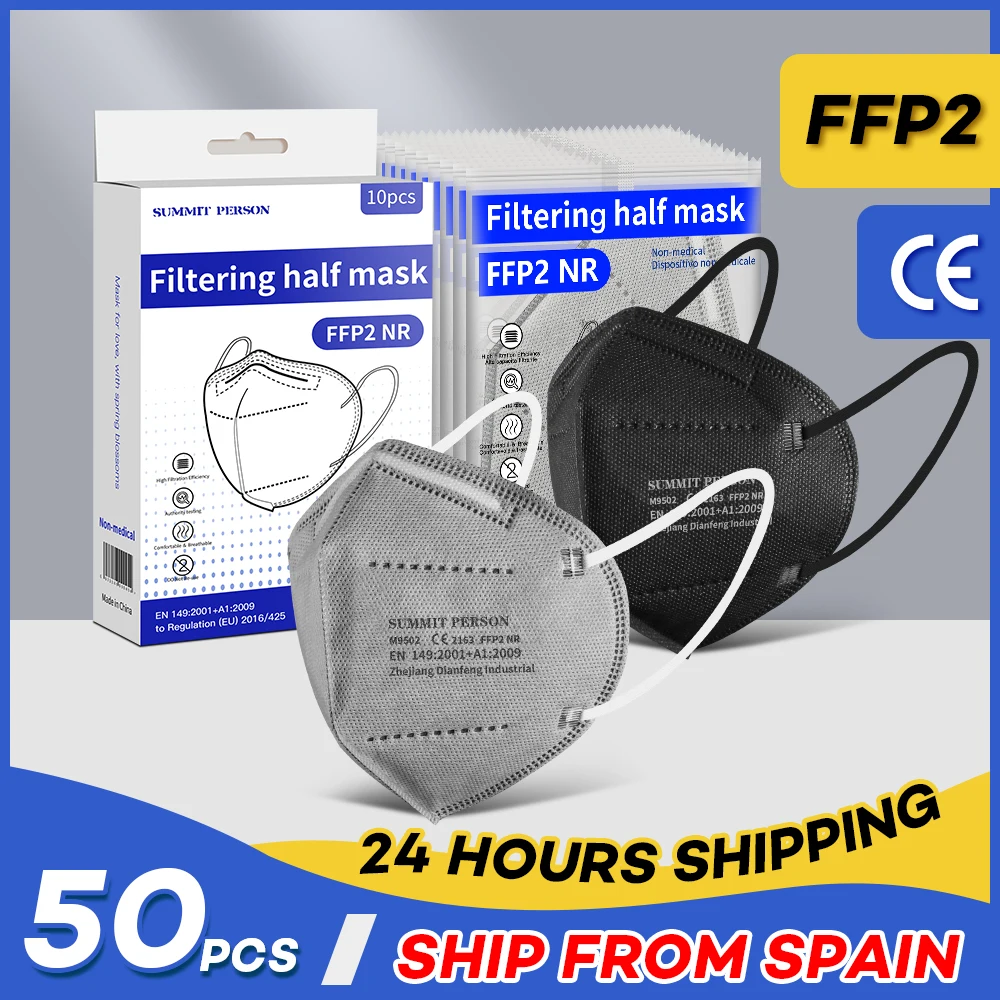 100 шт. отправка из Испании черные fpp2 маски Серый Белый Сертифика...
