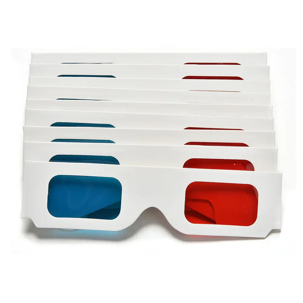 Популярные универсальные картонные очки Anaglyph 10 шт.лот, красные и синие голубые 3D-очки для кино, оптовая продажа