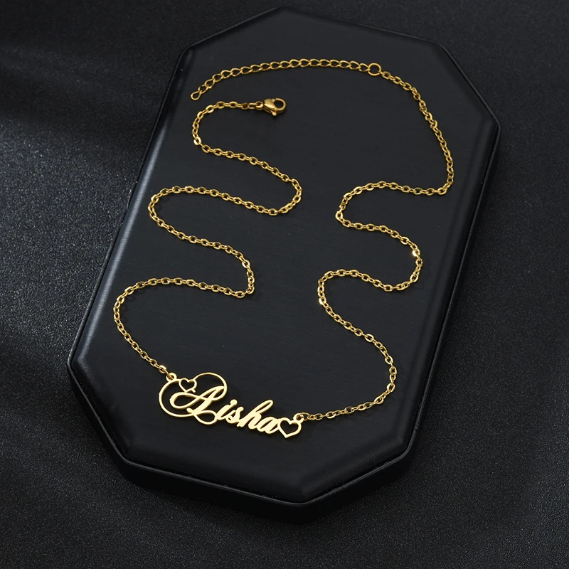 Пользовательское имя колье Золотое сердце из нержавеющей стали персонализированное ювелирное изделие для женщин Подарки на день рождения