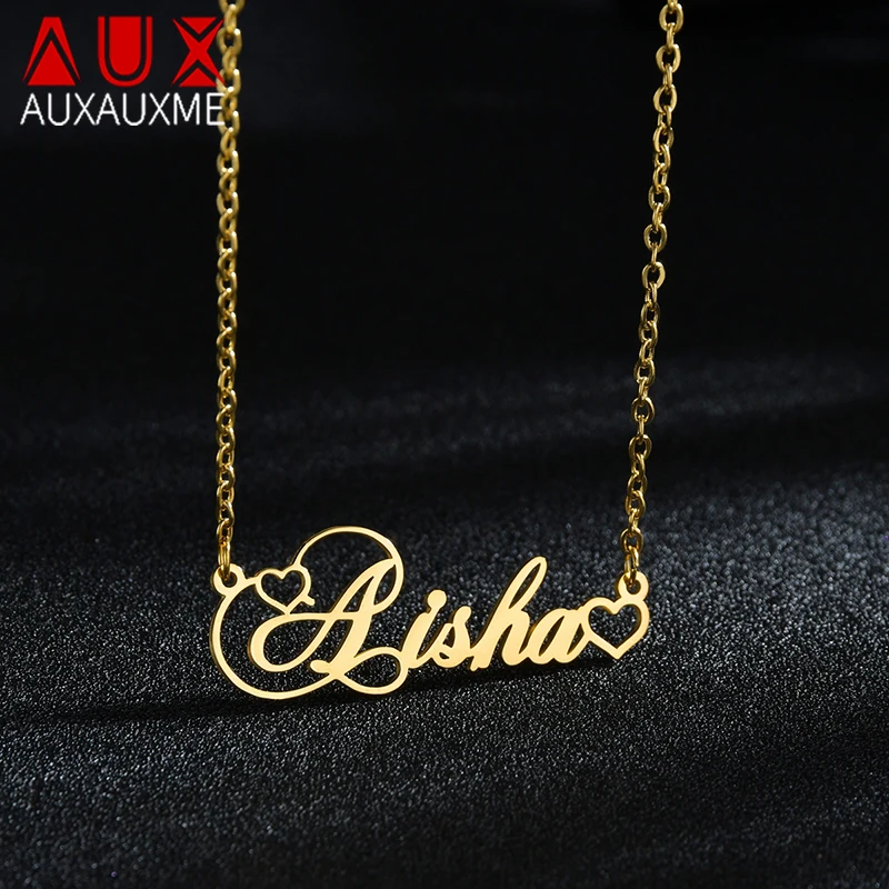 Ожерелья-Чокеры Auxauxme с именем на заказ, золотые ожерелья из нержавеющей стали с сердцем, персонализированные ювелирные изделия для женщин, подарки на день рождения